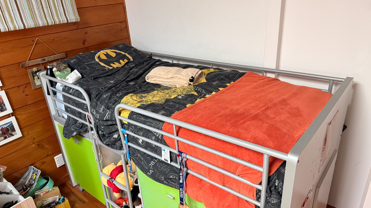Avant de descendre de son lit, Cosmo le refait, chaque matin, pour lui donner l'apparence des lits qu'on trouve a l'hotel.