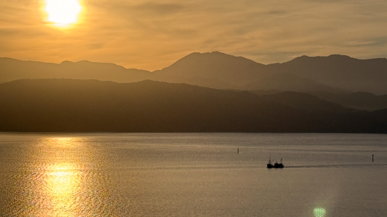 Superbes conditions pour ce bateau de pecheur qu irentre au port sous un superbe lever de soleil