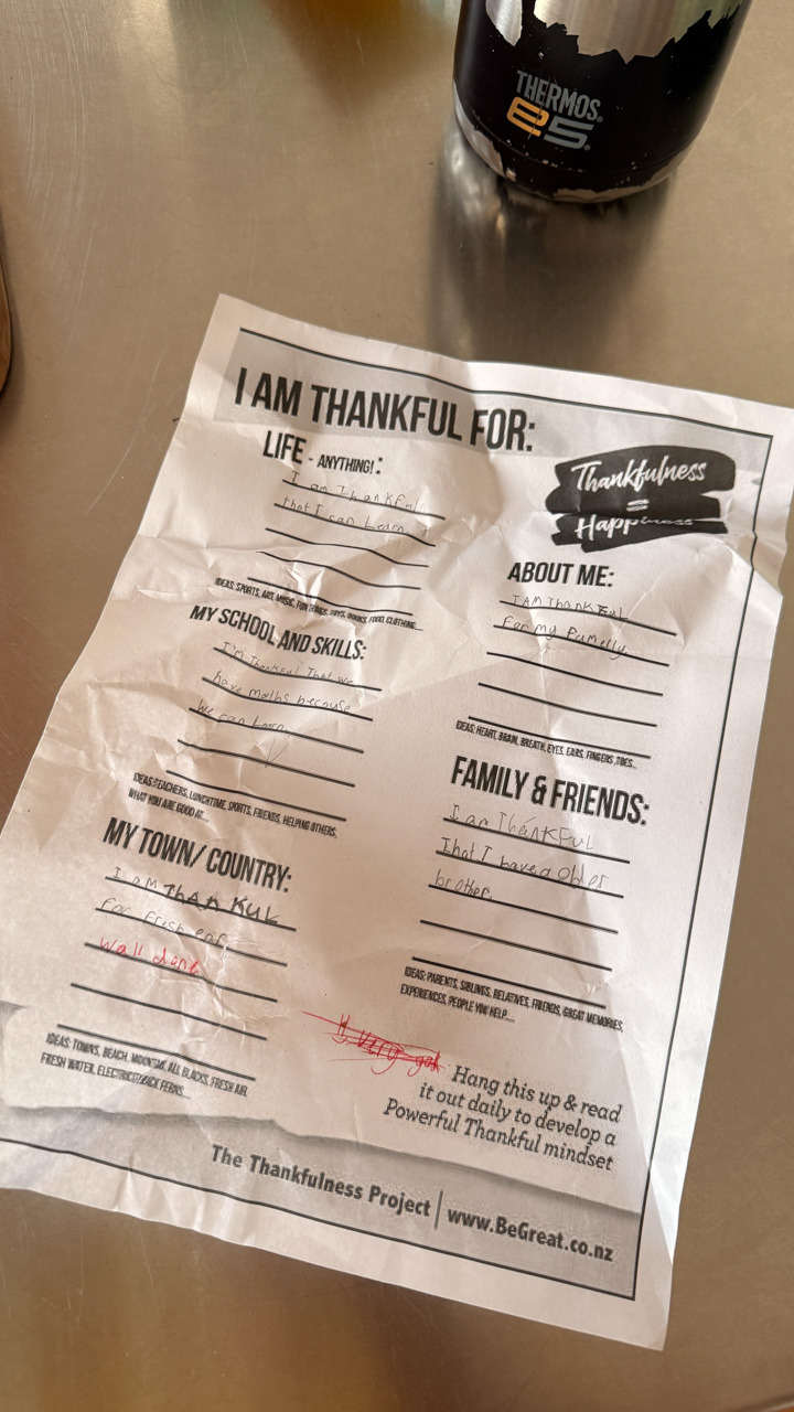Cosmo est revenu avec une feuille de l'ecole ou il a fait un exercise sur la reconnaissance. Parmi ses sources de bonheur, sa famille.