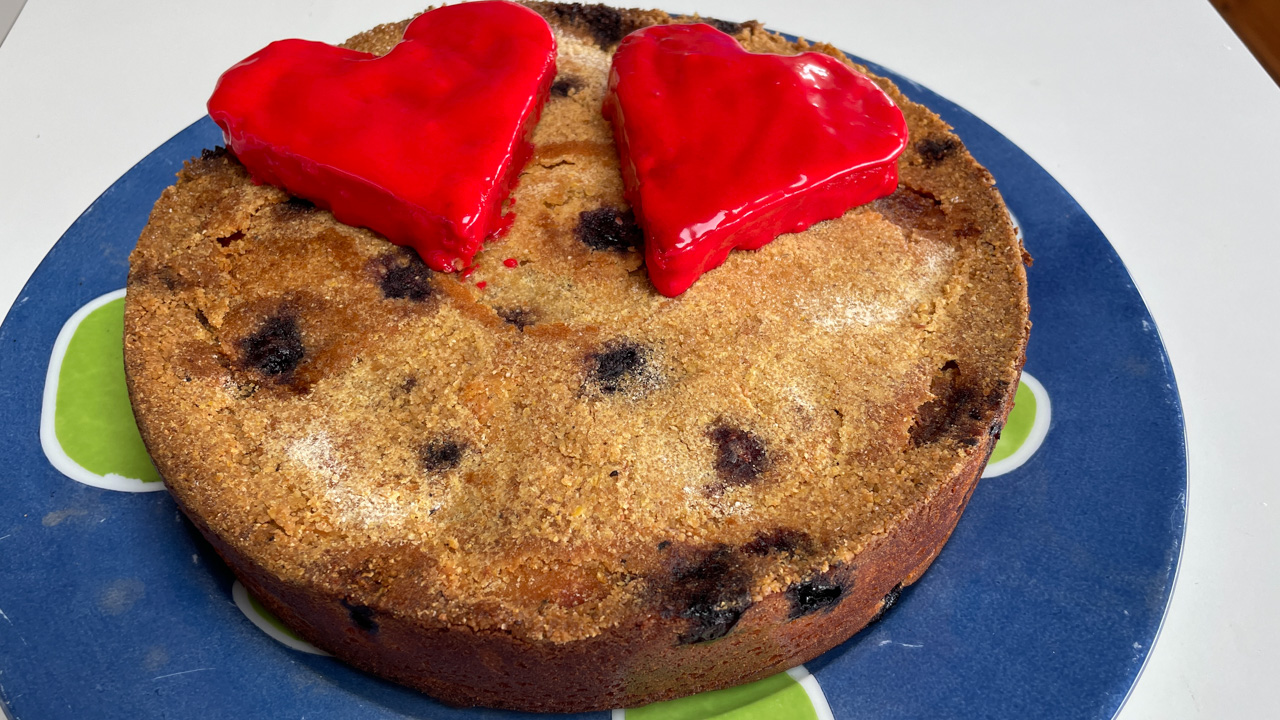 Seb m'a prepare en cachette un gateau de saison: c'est la Saint Valentin!