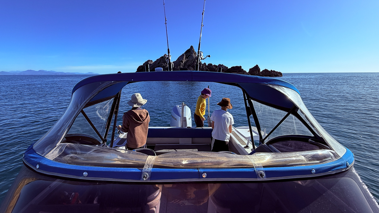 21. Plus tard, on part tous ensemble pecher a Fin Rock. On remonte 5 blue cods.
