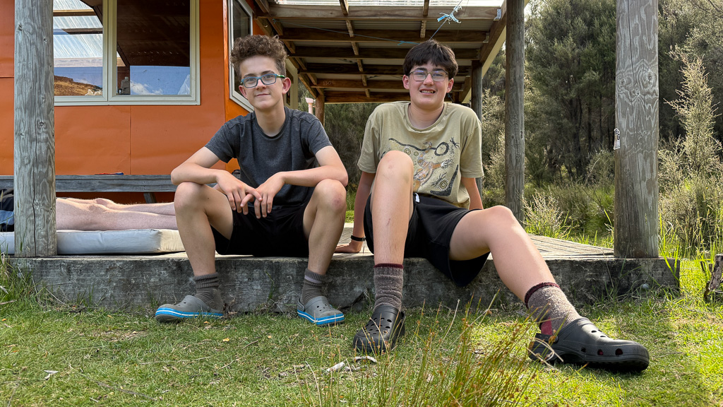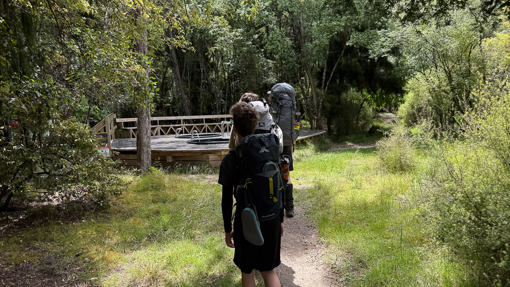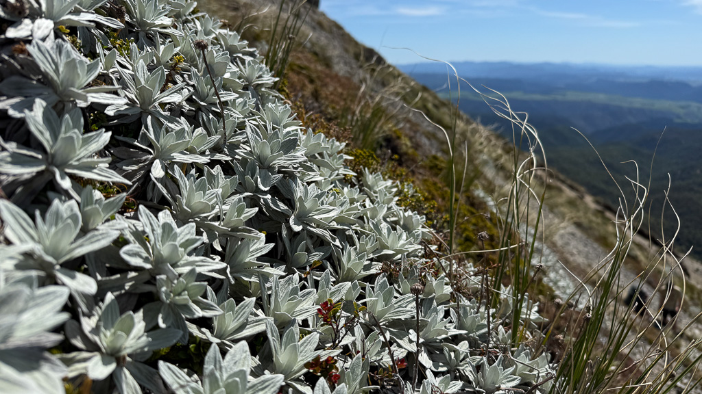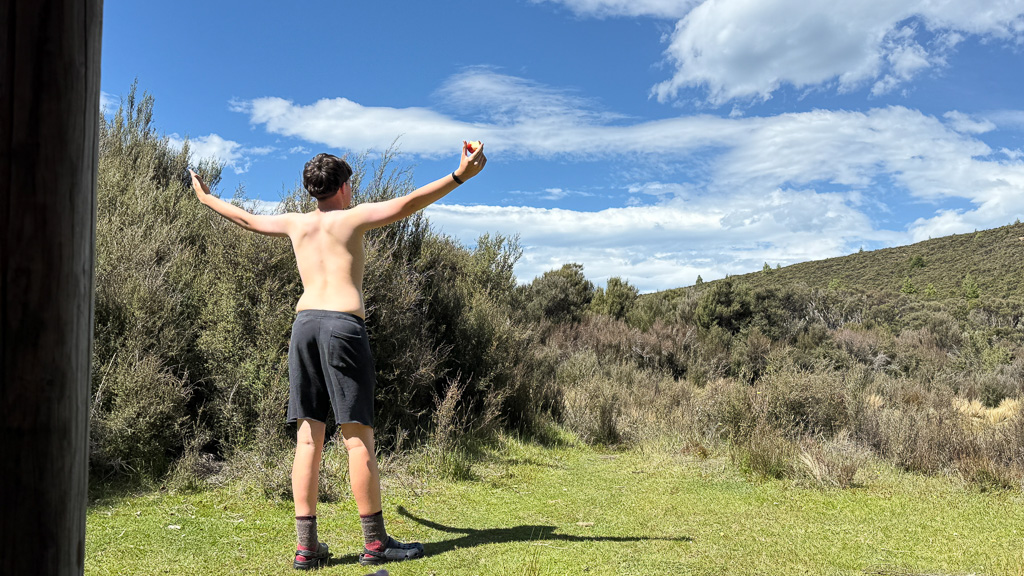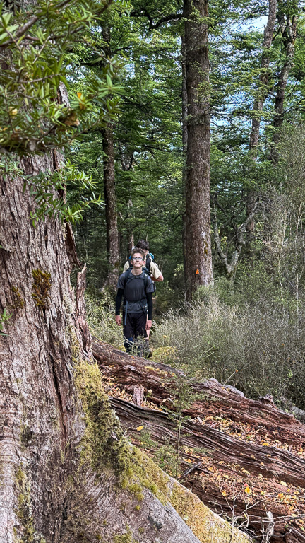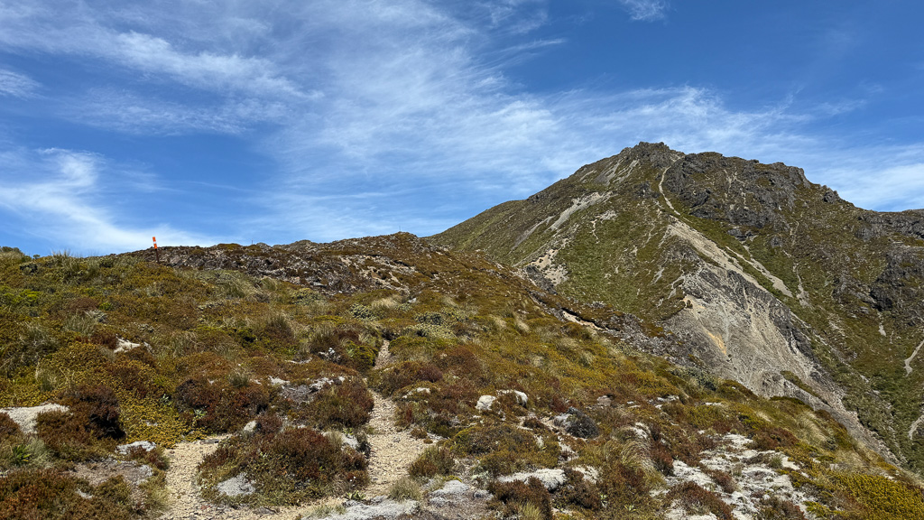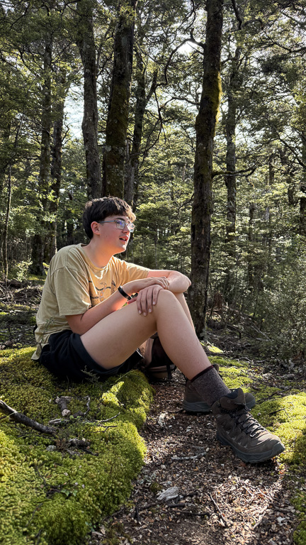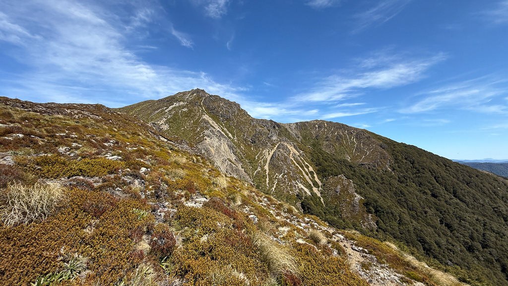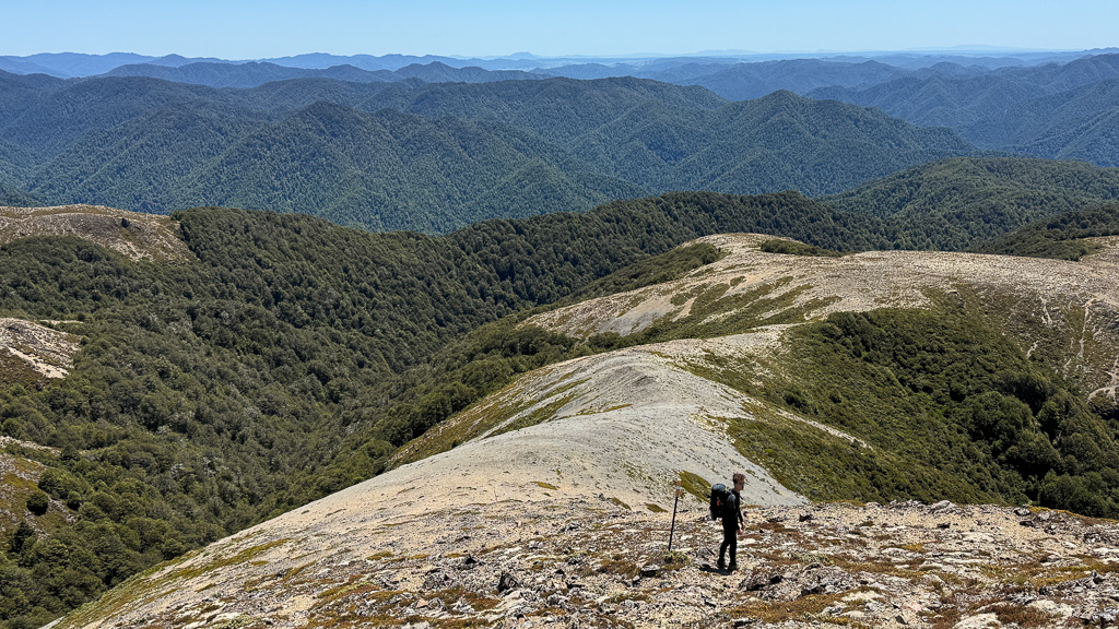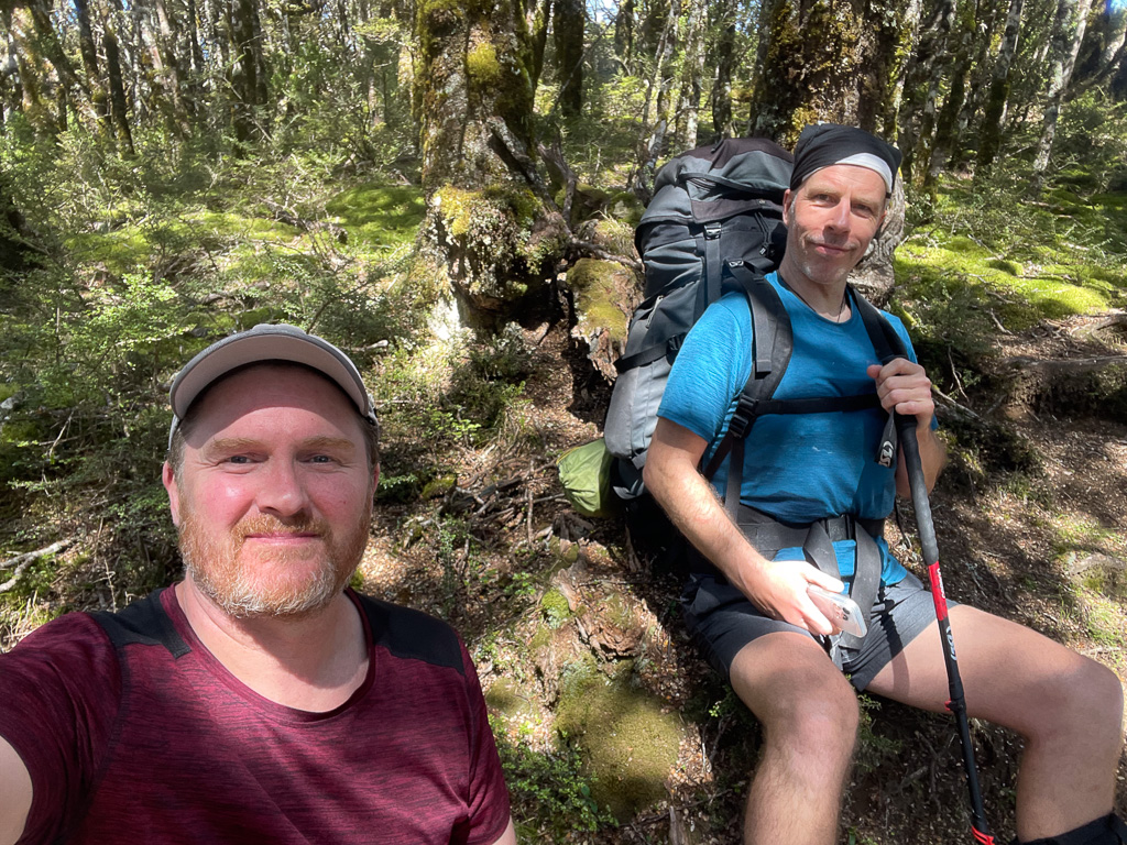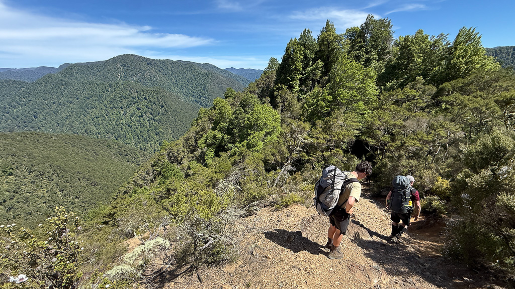 95. Les garcons restent au col, pendant que Mat et moi grimpons les derniers metres pour atteindre Whetu, a 1650m.