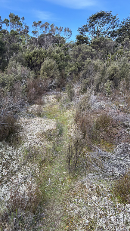 162. Sur le retour, j'ai un peu de mal a accepter l'idee du retour a la civilisation. Je regarde derriere moi et vois ce sentier qui m'incite a rester ici.
