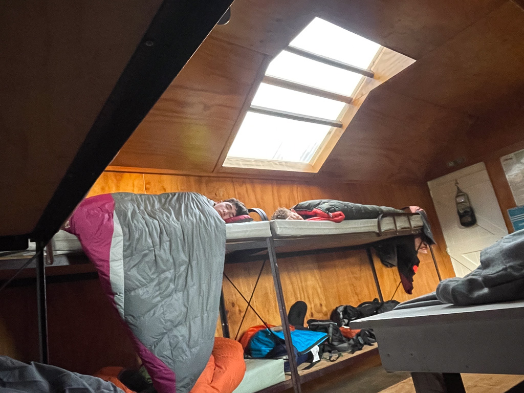 31. ... de passer le reste de la journee a Middle Hill Hut et d'attendre le lendemain pour finir la montee, puisque la meteo nous a promis des conditions meilleures.