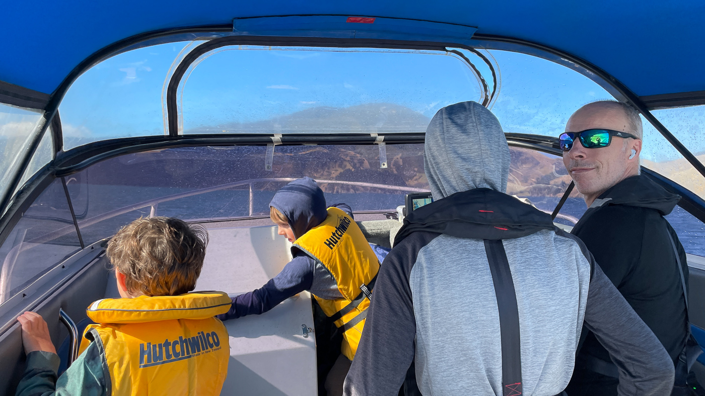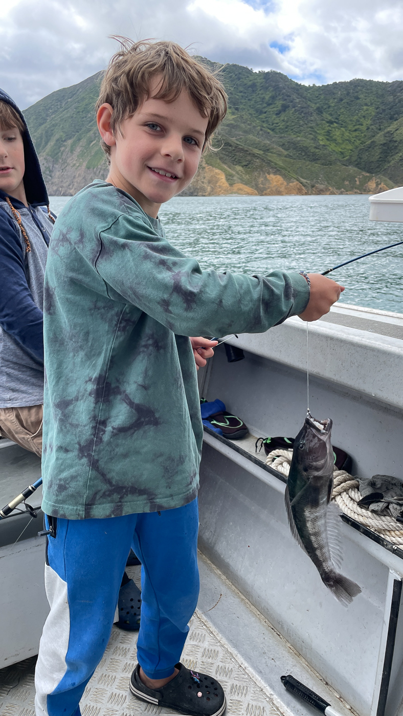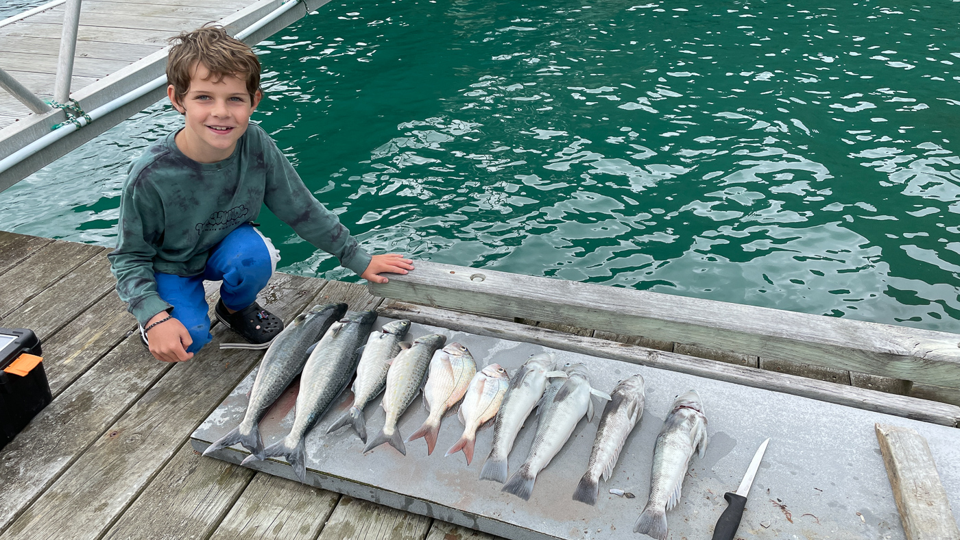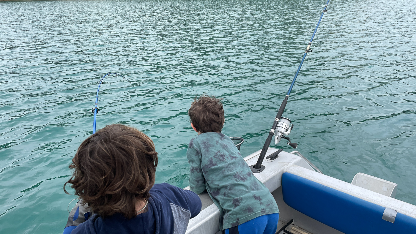 28. Seb et les enfants partent pecher en bateau.
