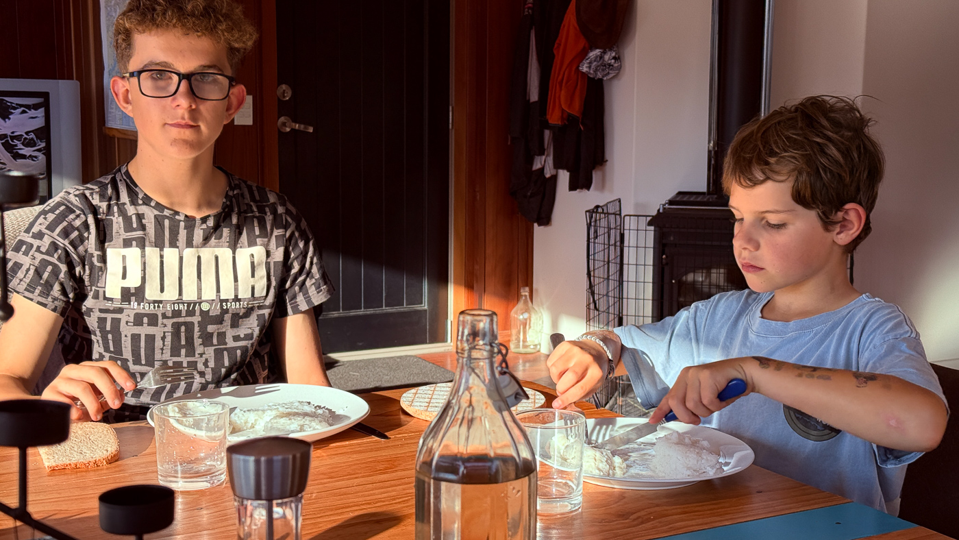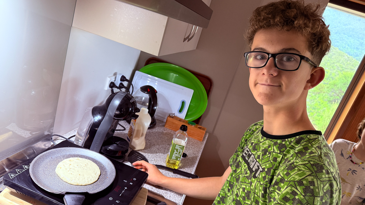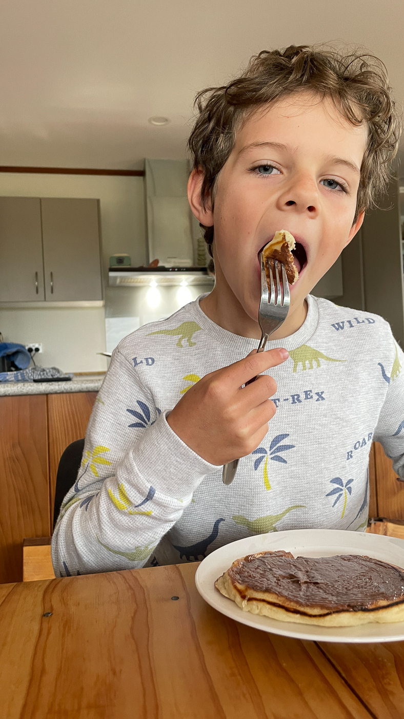 43. Dimanche matin. C'est la tradition, pancakes pour le petit dejeuner.