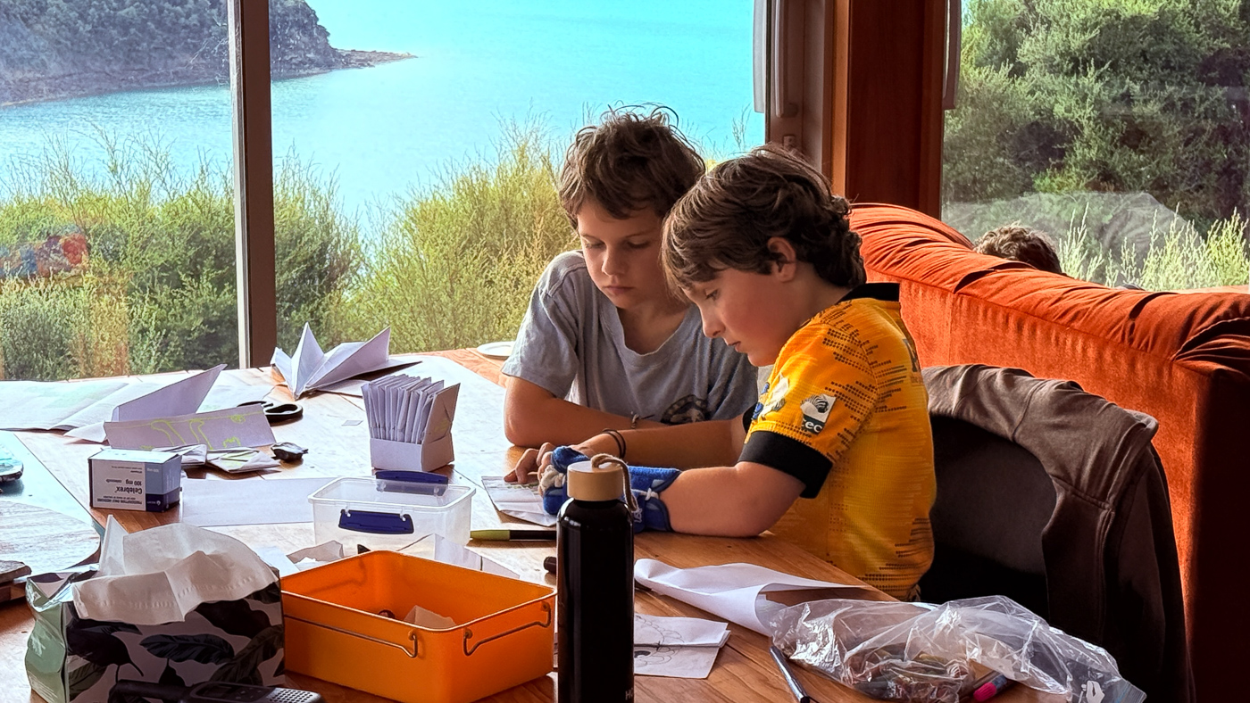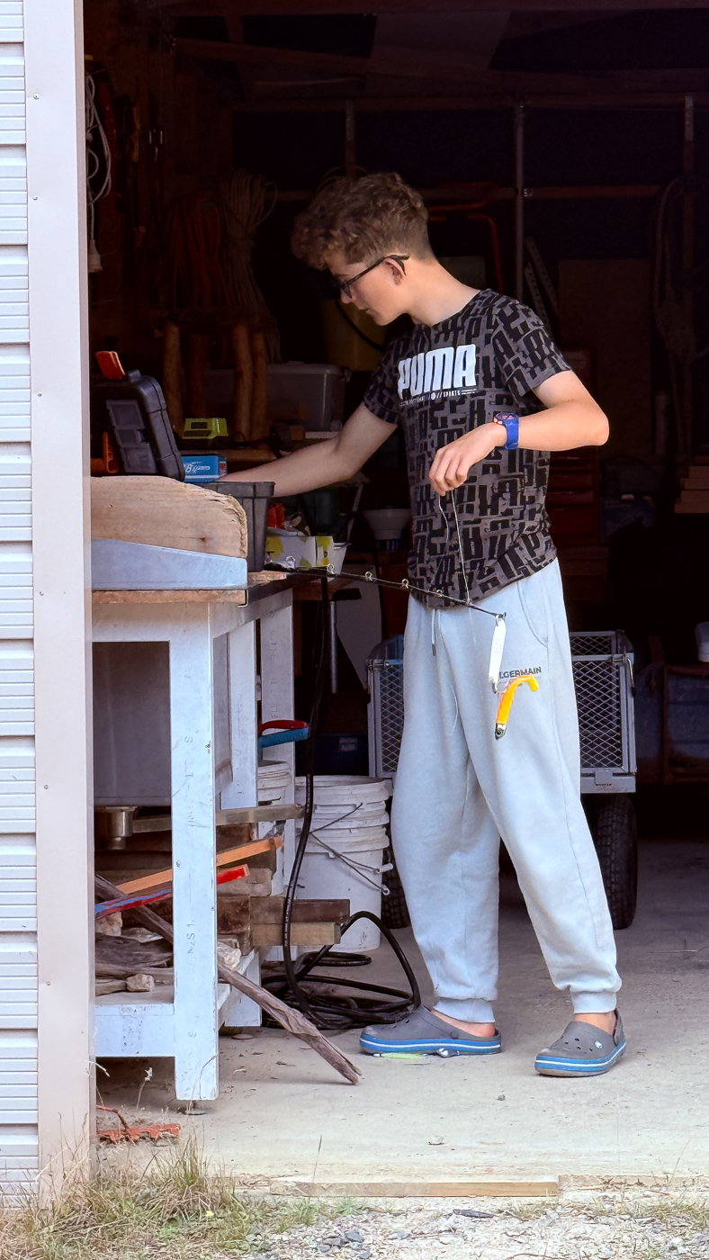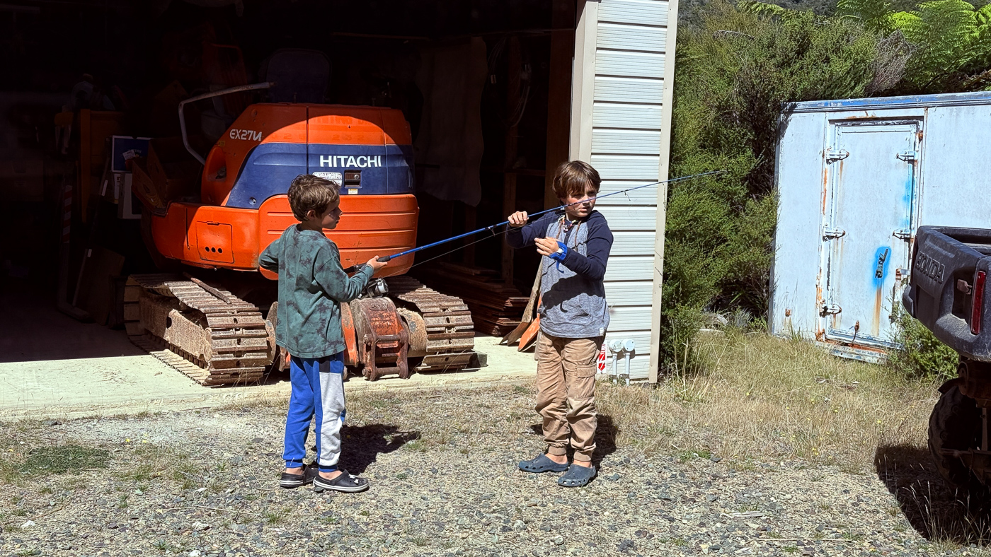 20. Les garcons ont bien l'intention d'aller pecher des que possible alors ils preparent le materiel.