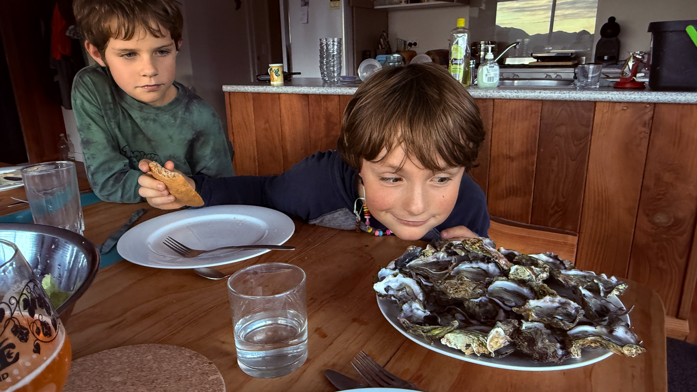 56. Leonard ramasse, ouvre, et deguste les huitres a meme la plage!