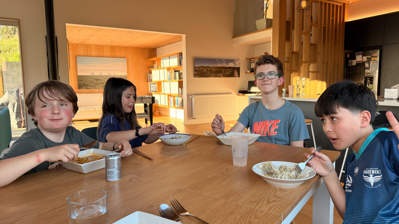 Mary est venue diner ce soir. C'est la premiere fois qu'on l'invite a la maison, 3 ans apres qu'elle ai emmenage dans le studio. Elle demenage pour Taupo mi Decembre, et on voulait s'assoir un petit coup ensemble avant son depart. Elle a ete une presence discrete, respectueuse et chaleureuse, ne laissant jamais l'occasion de faire plaisir, aux enfants et aux moins jeunes.