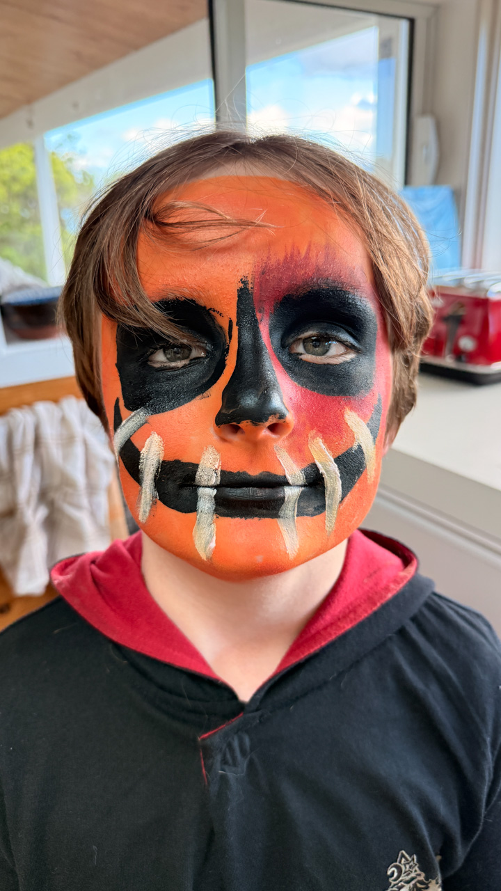 Cosmo s'est fait maquiller par Adan, lui qui a refuse de se deguiser cette annee (il est bien trop cool pour ca!). Cosmo n'a pas boude son plaisir!