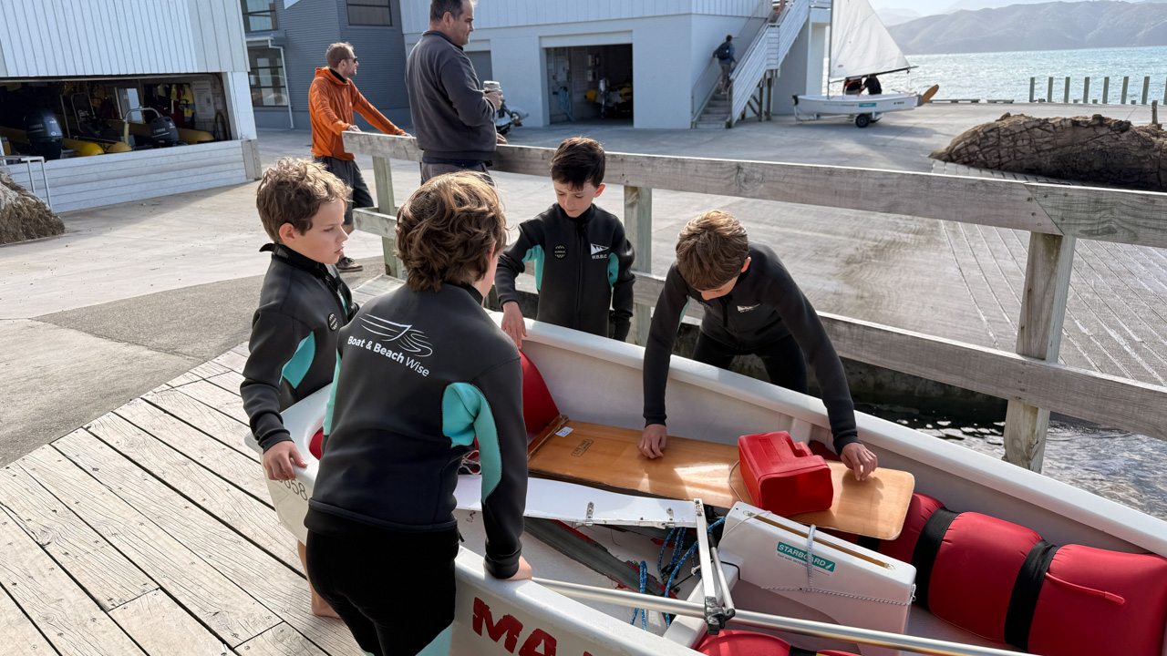 Bien que ce cadeau soit destine aux deux garcons, c'est Adan que revient la primeur de le naviguer en premier car c'est grace a lui qu'il a pu monter en Blue Fleet. Ce matin, c'est un melange de nervosite et de fierte qui anime notre aine.