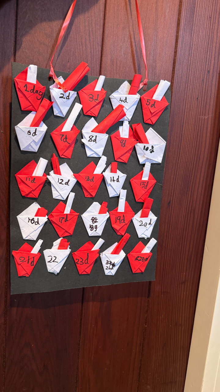 Cosmo a fabrique un calendrier de l'avant de la gentillesse a l'ecole. J'ai hate de le parcourir.