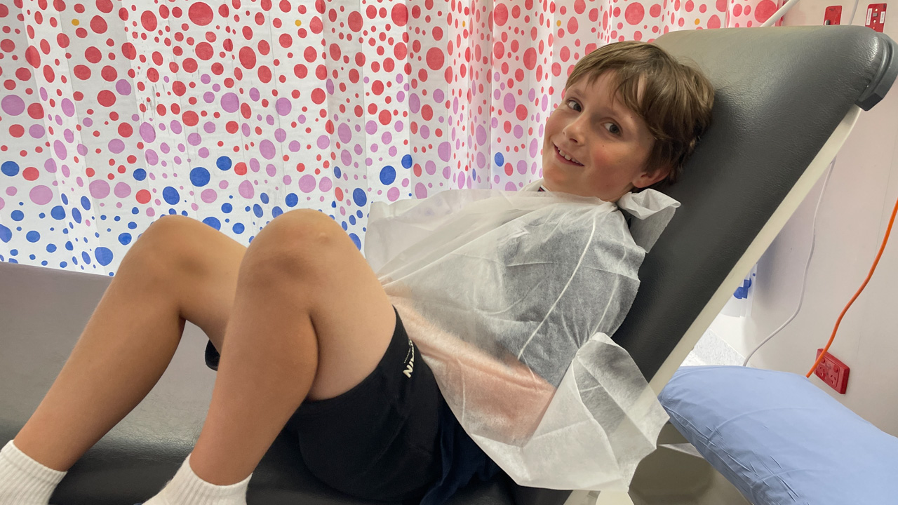 C'est la troisieme attelle/platre qu'on lui compte: Cosmo a fait une mauvaise chute a l'aire de jeux de Miramar North School et s'est fele un os du poignet. C'est parti pour trois semaines d'immobilisation.