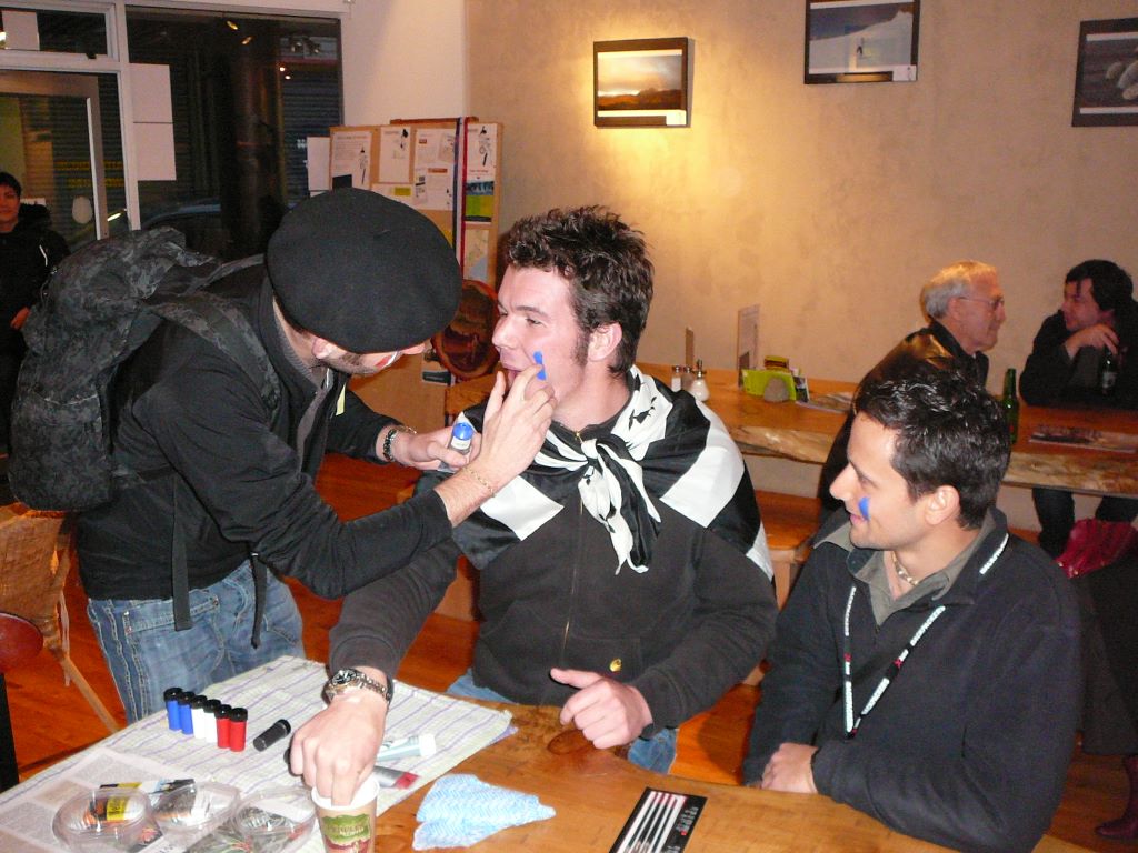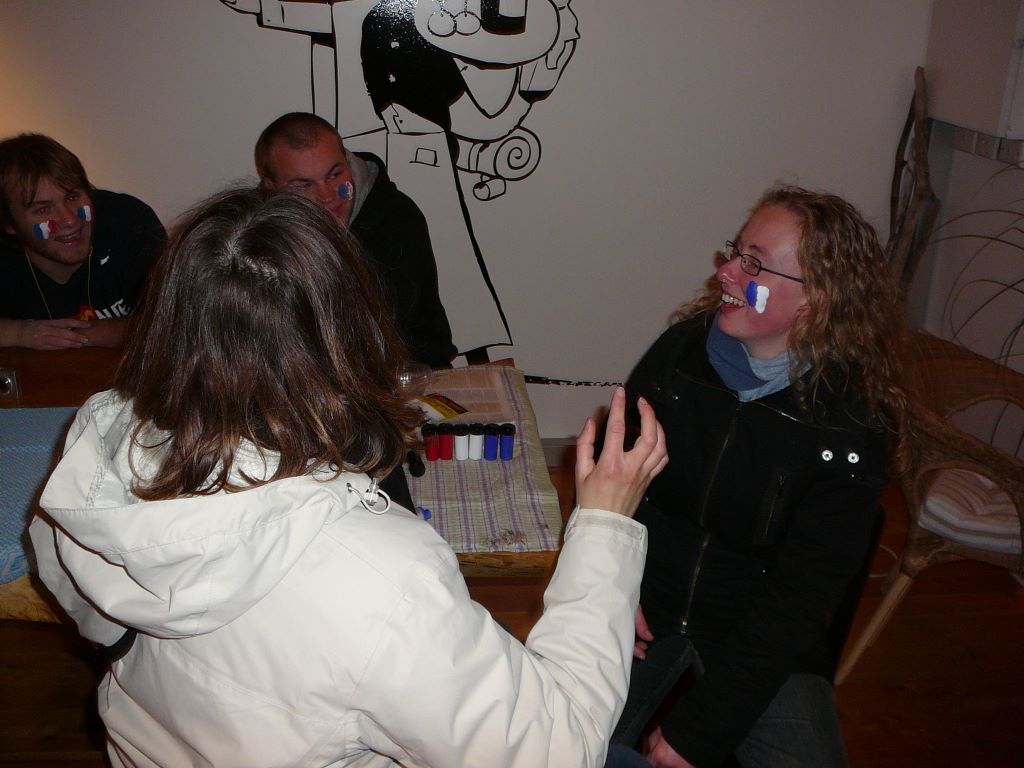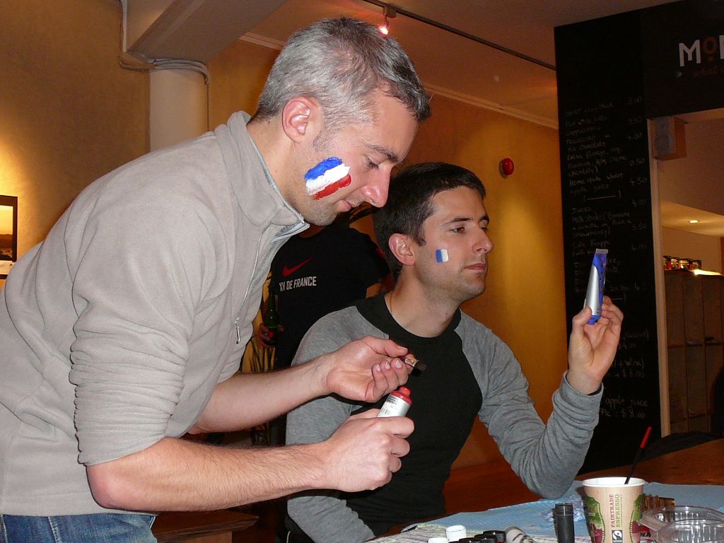 32. Seb s'occupe de peindre Chris en bleu blanc rouge.