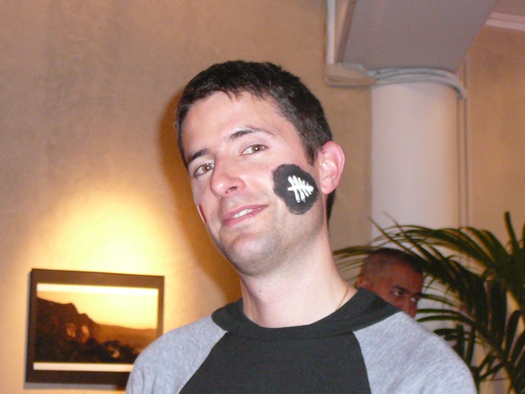 34. Chris ne veut froisser personne, et a une joue pour chaque équipe!