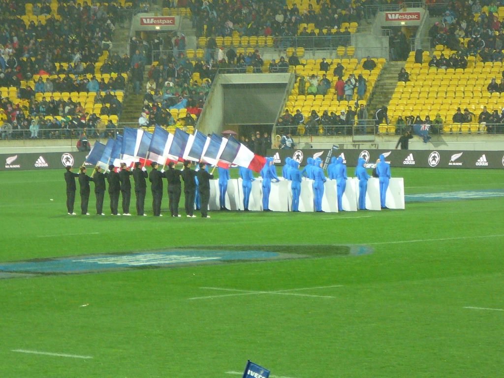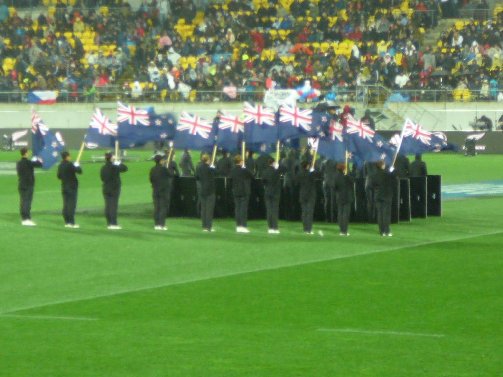 35. Sur le terrain, avant le match, les drapeaux Néo-Zélandais.