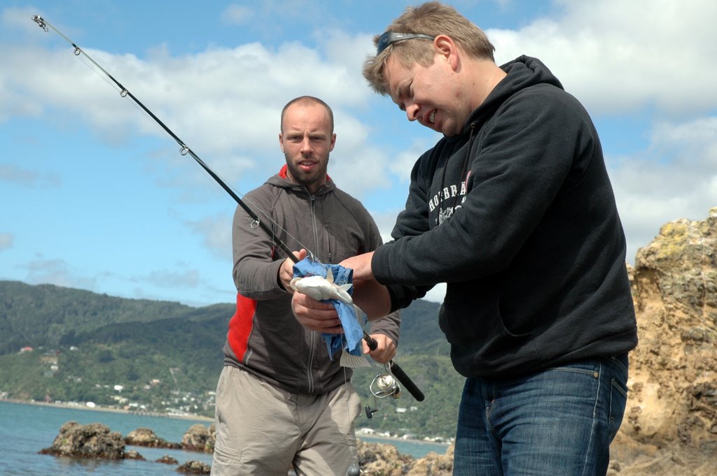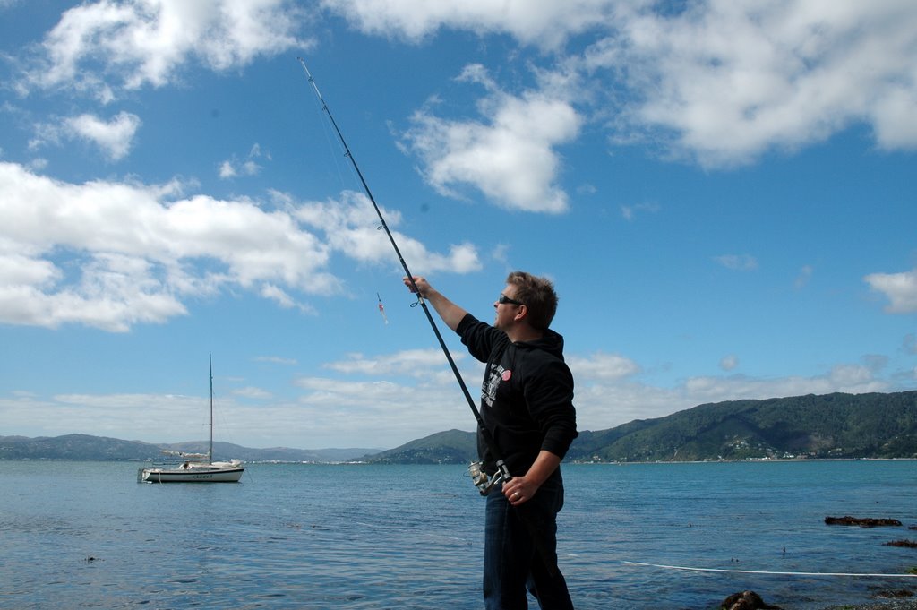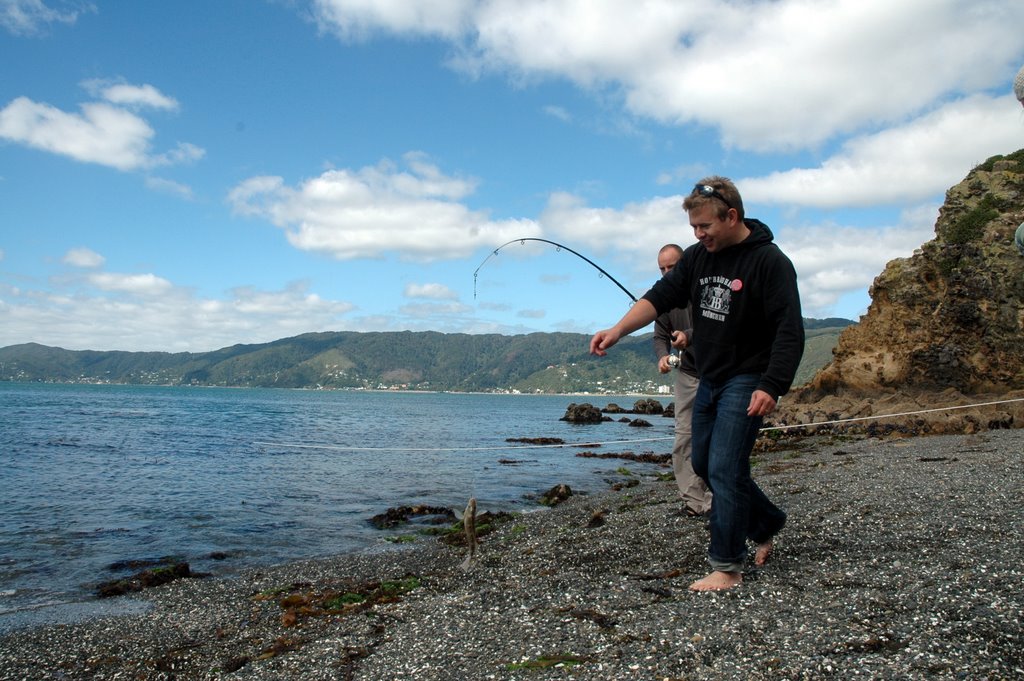 Une première pour moi: je pêche en mer! Bon ok, depuis le bord, depuis la plage de Wardes Island, avec nos amis Jonny et Rachel. Nous les avons emmené pour une virée sur Ciarrai, et Jonny avait pris son matériel.