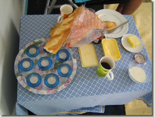 1. Samedi 8 Octobre. Premier petit déj' à Wellington, avec de la baguette
