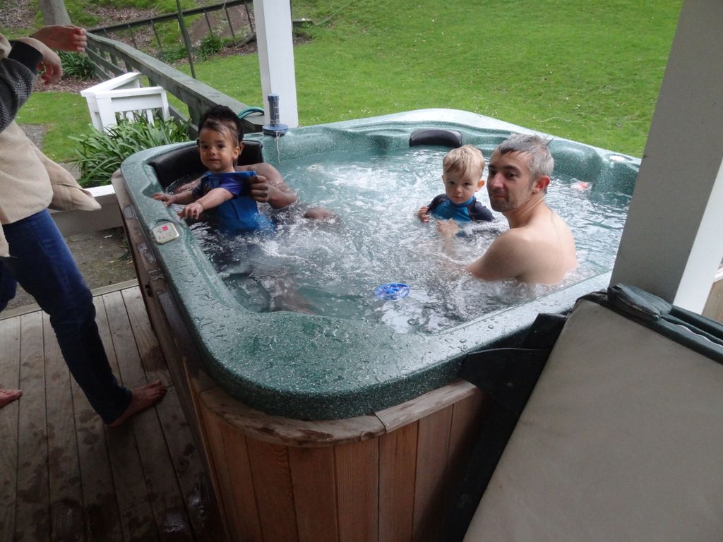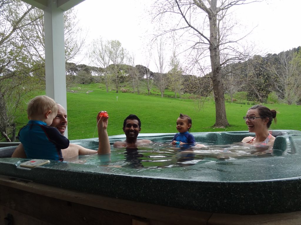 Petit week-end à Tinui, au populaire Poplar cottage de Jane et Kelso, en compagnie de Steph, Ravi et Manu. Le temps n'était pas terrible, alors on a profité de Castlepoint, un petit peu, et du jaccusi, beaucoup!