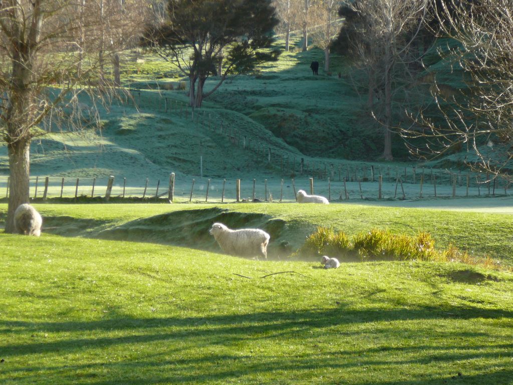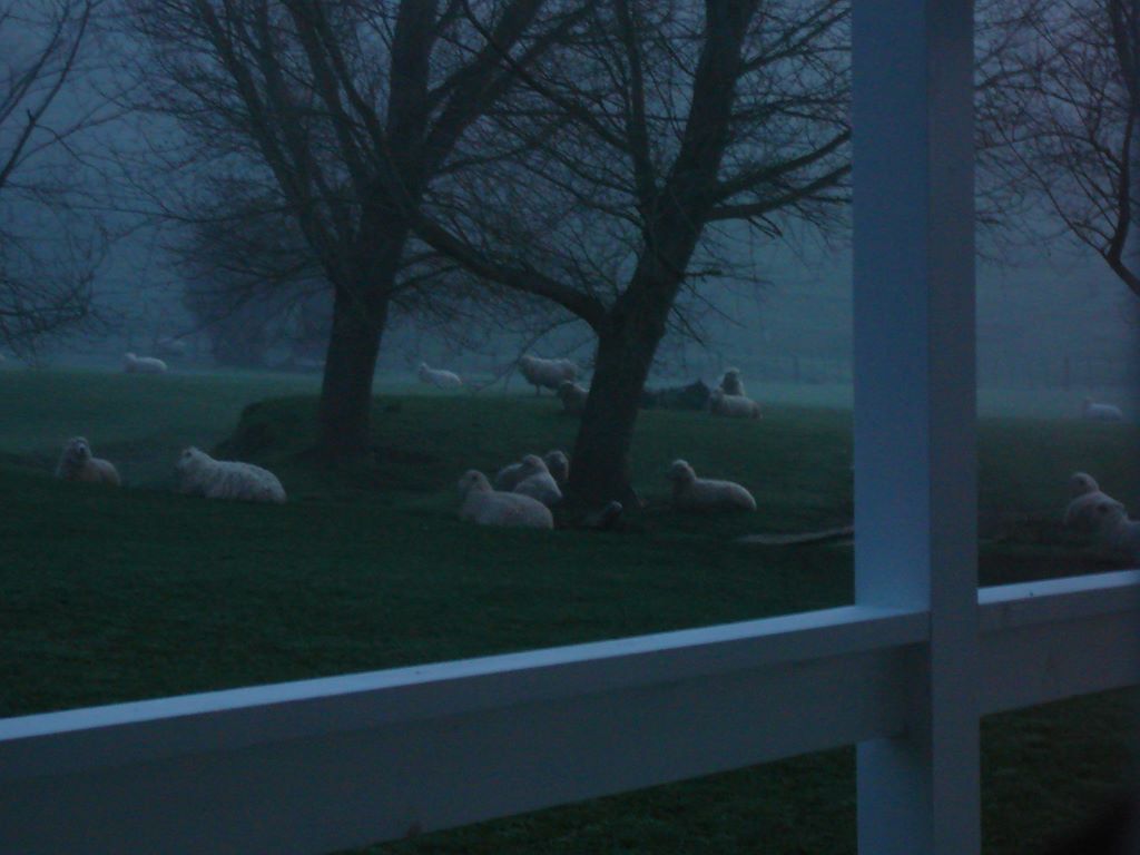 3. Samedi matin. Notre alarme de voiture a sérieusement déconné et nous sommes réveillés à 6h! Les moutons devant le cottage dorment encore!