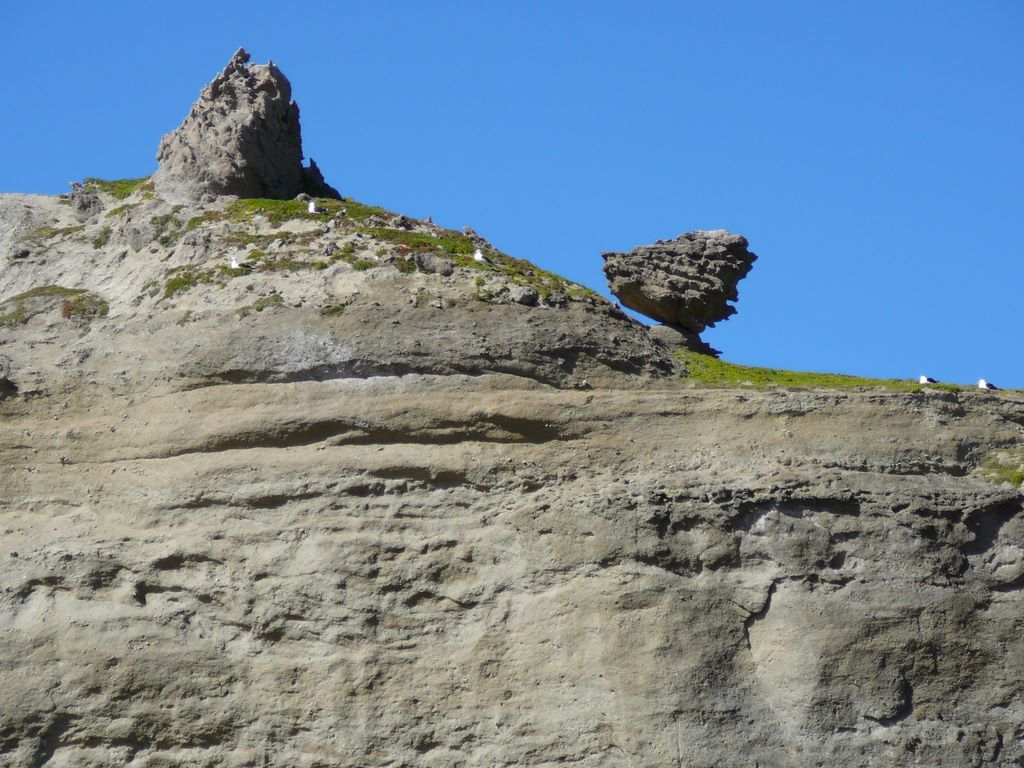 28. Nous repartons pour Castlepoint. En contrebas, on aperçoit les énormes bateaux de pécheurs ...