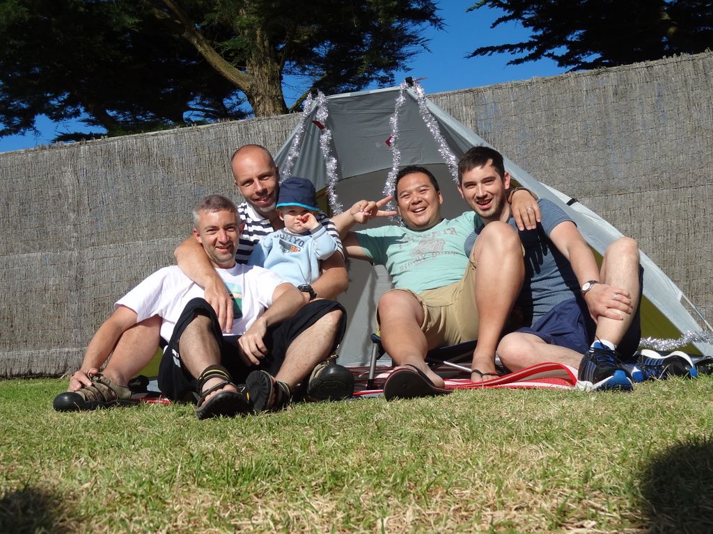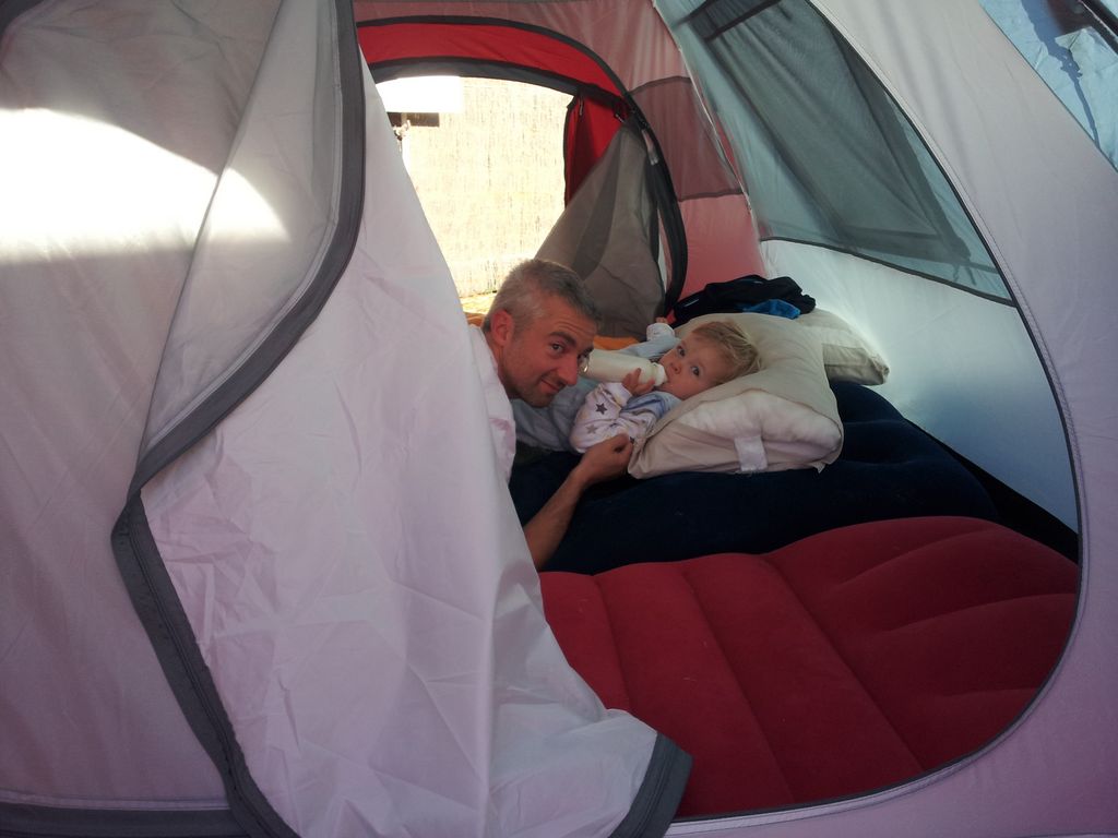 18. Et voila, c'est le 22, et la premiere nuit en tente est derriere: elle s'est tres bien passee, Adan est aux anges de voir ses deux papas des le reveil, dormir a cote de lui.