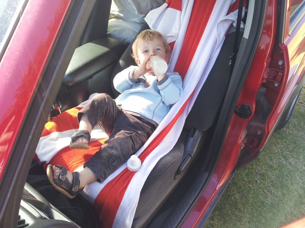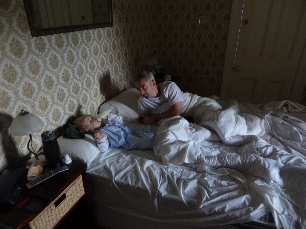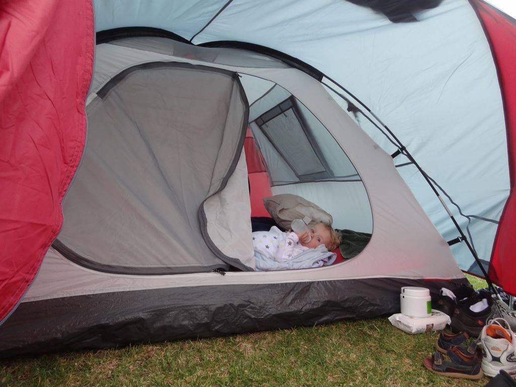 16. Adan s'apprete a passer sa premiere nuit en camping, alors on essaye de respecter un minimum la routine: biberon avant de se coucher!