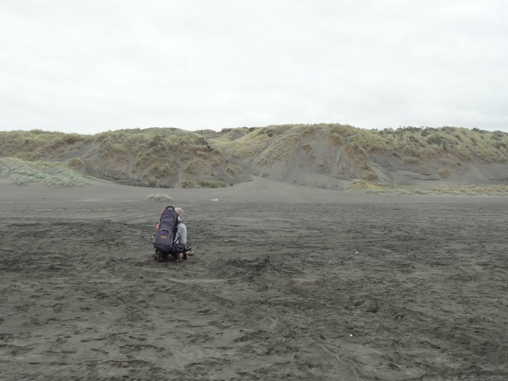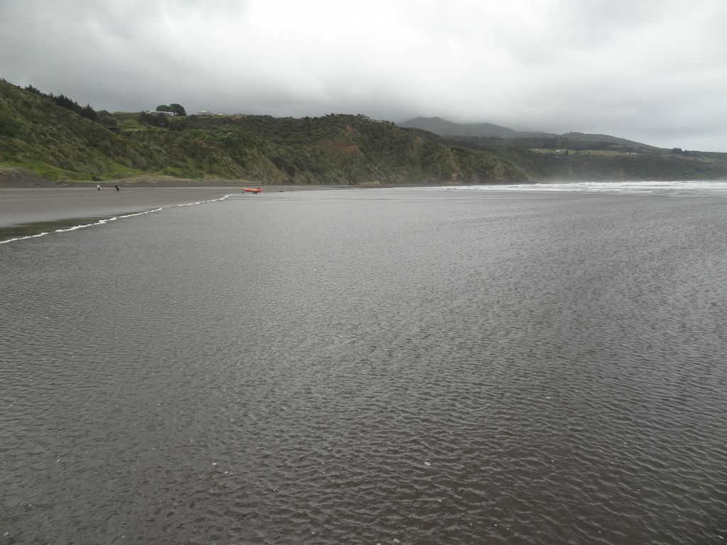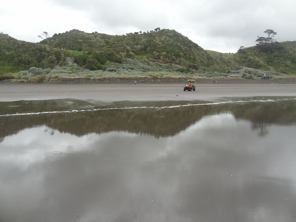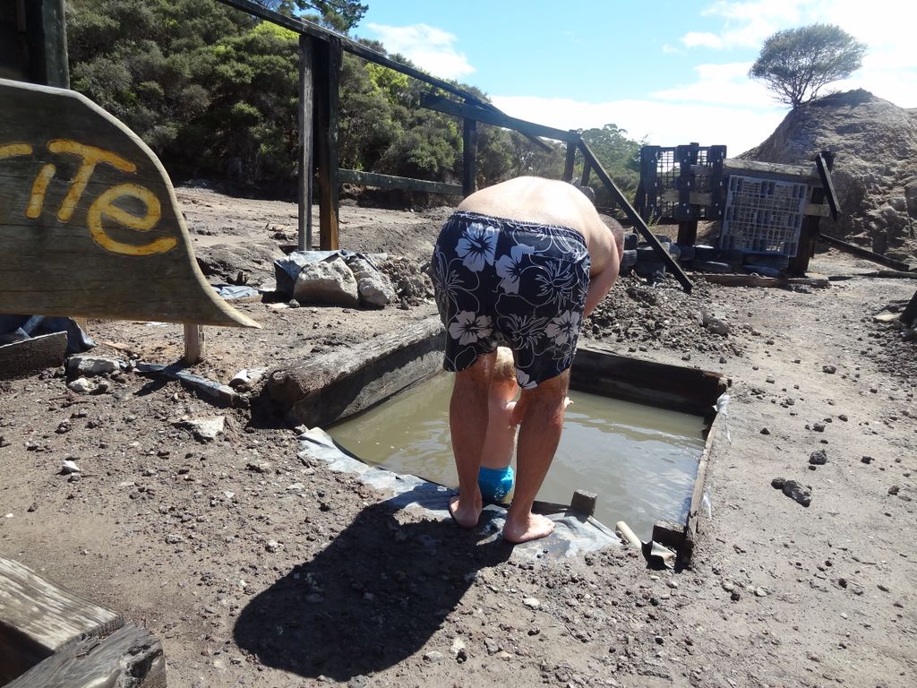 91. Nous arrivons a Kawhia dont la plage est connue pour son activite geothermique: on creuse et de l'eau chaude sort de terre.