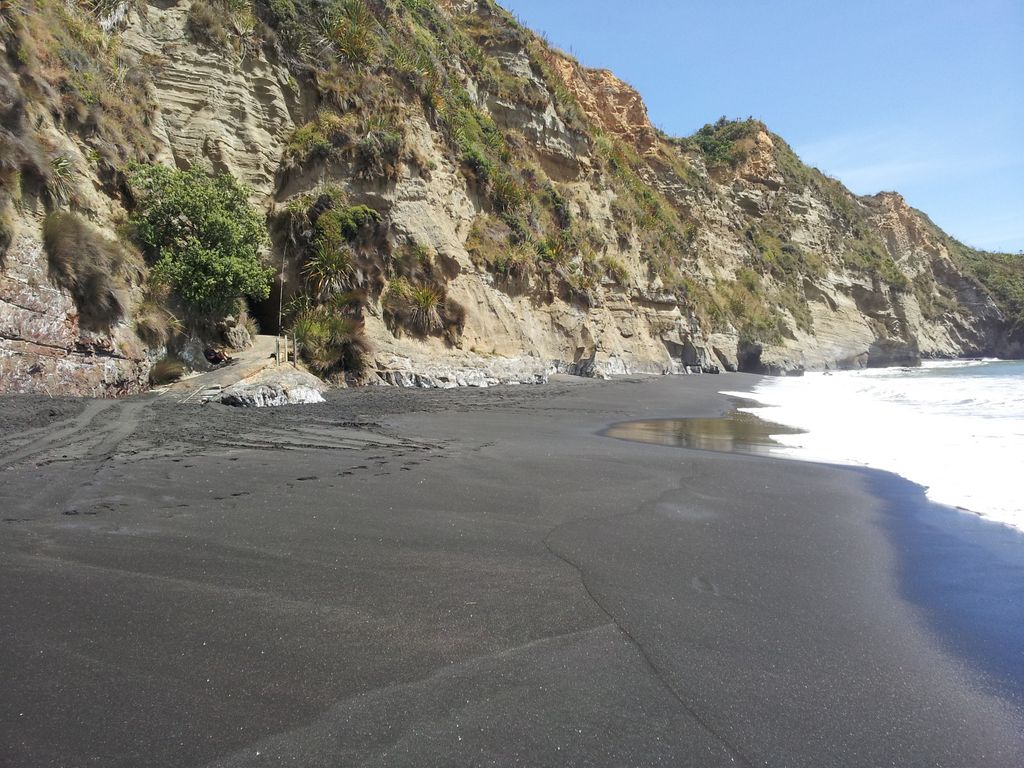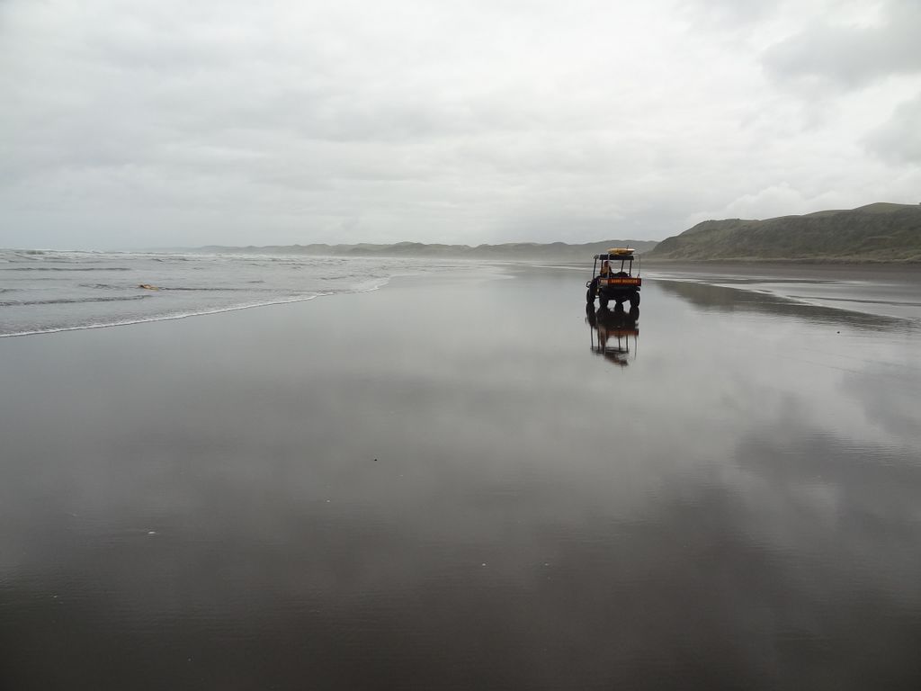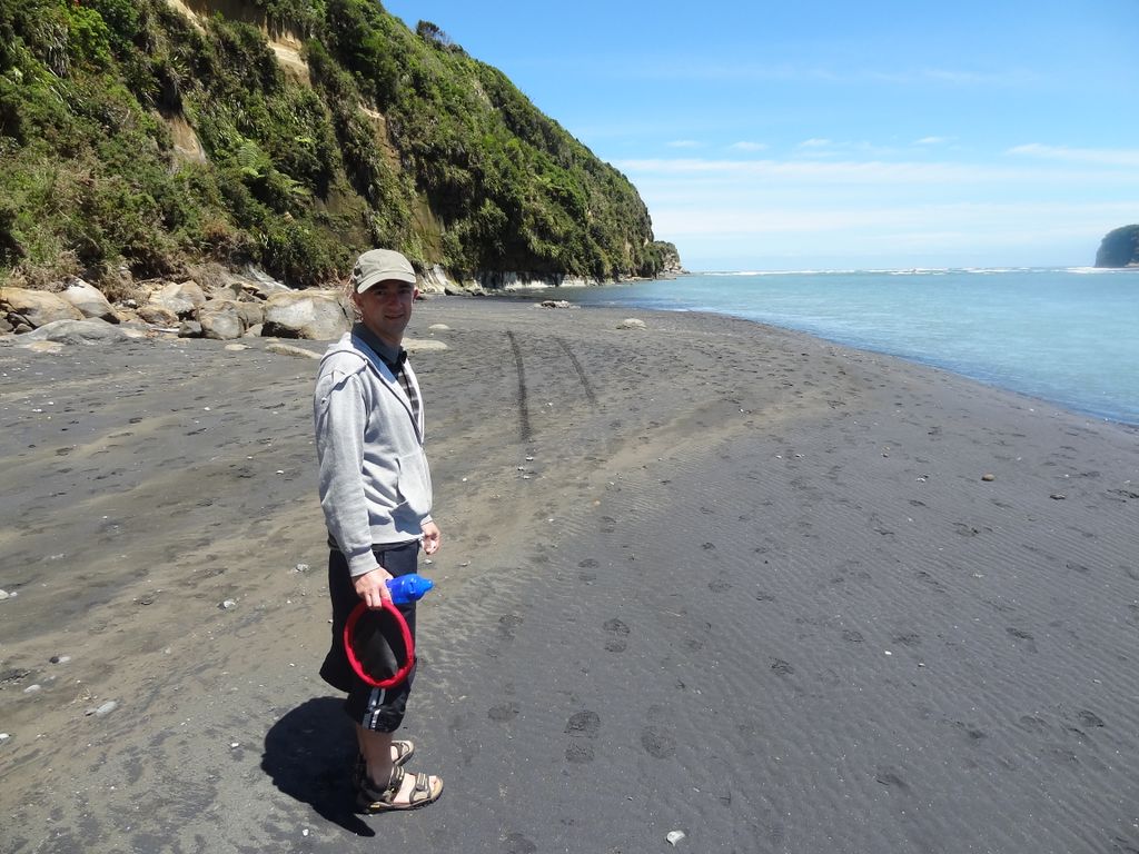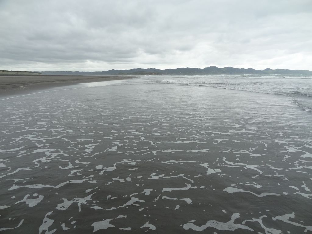91. Nous arrivons a Kawhia dont la plage est connue pour son activite geothermique: on creuse et de l'eau chaude sort de terre.