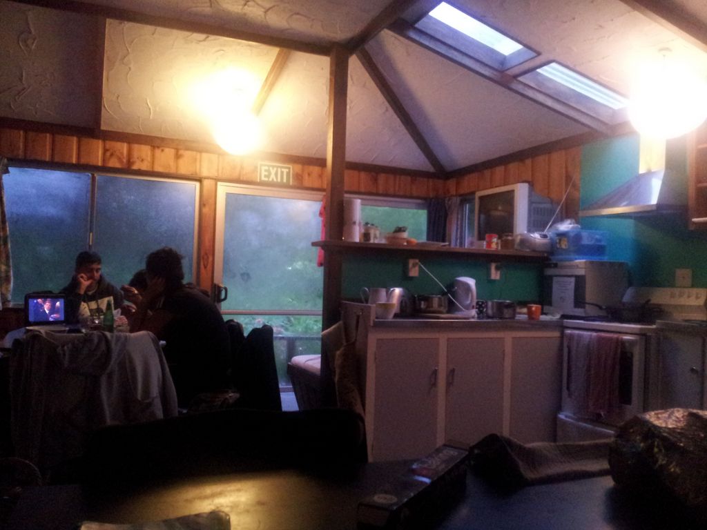 200. Le soir, au backpacker de Whangoroa, la pluie redouble d'intensite ...