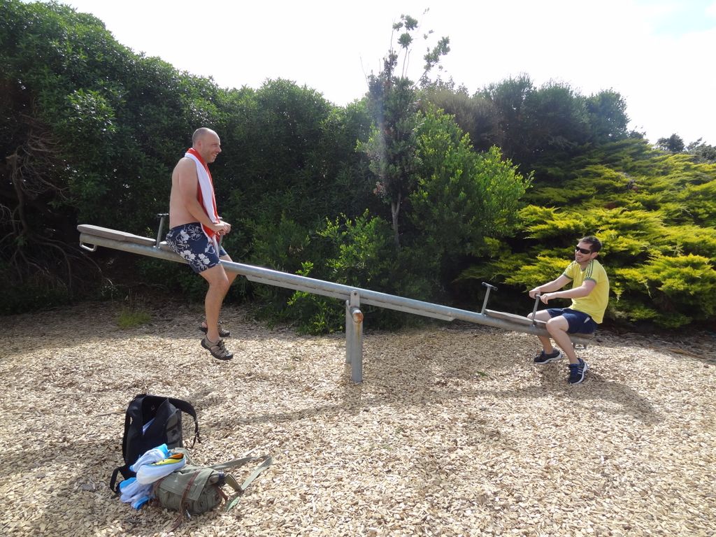 57. Puis, au lieu dit les "Three Sisters", on fait une pause pique nique.