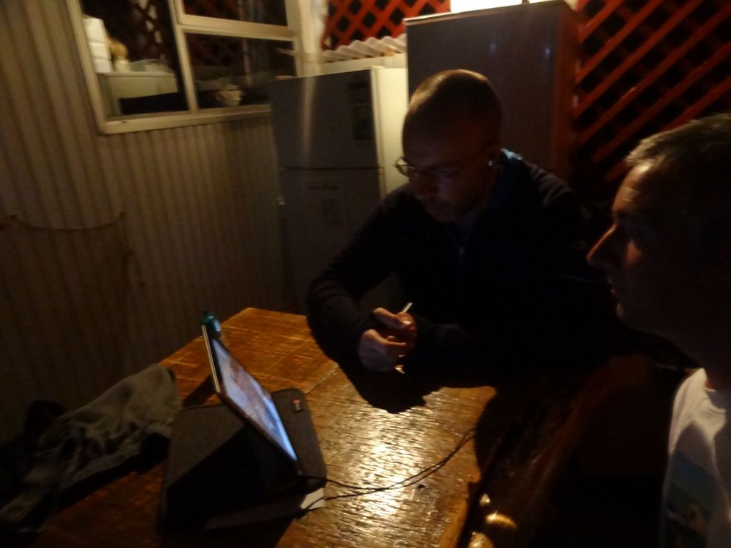 84. Decision est prise: on annule le backpacker, et on s'installe sur le terrain de camping local. Adan tient absolument a m'aider ...