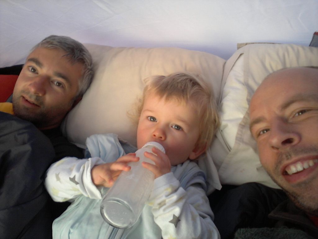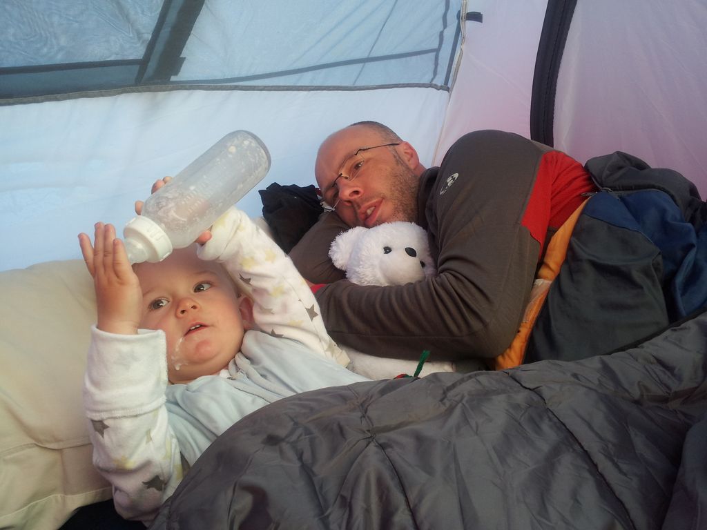 40. Dimanche matin. Nouveau biberon, apres une nuit encore bien froide. Mais cette fois ci, nous nous etions prepares et on a pu dormir.