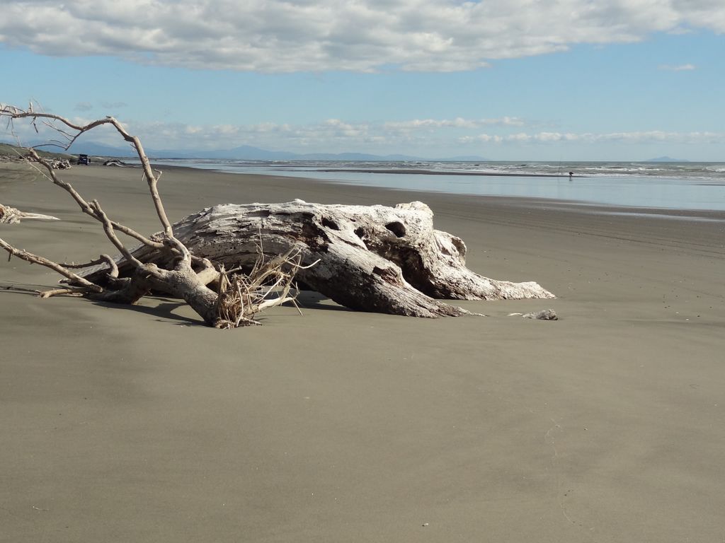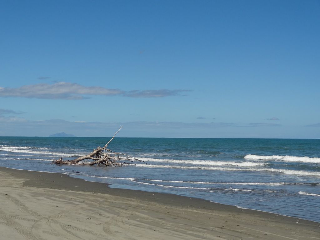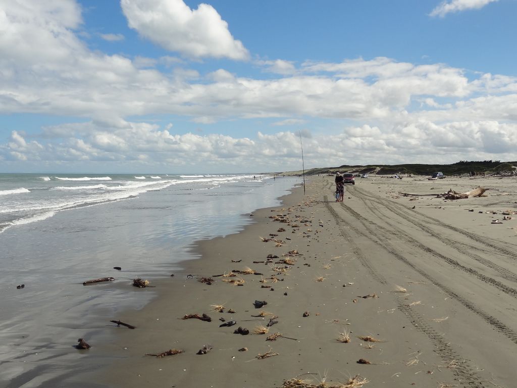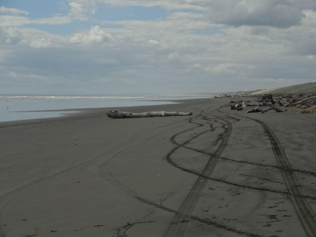 19. Quelques heures plus tard, quand le soleil s'est un peu calme, on a pris les voitures, et nous sommes eloignes de l'acces d'Himatangi. La plage est maintenant pour nous.
