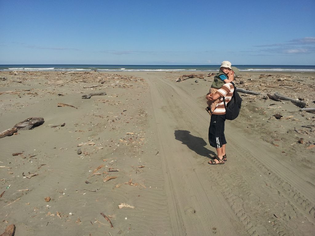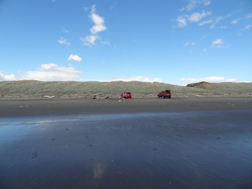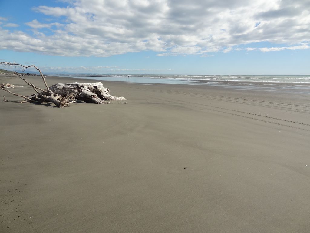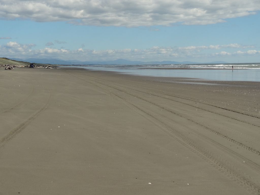 19. Quelques heures plus tard, quand le soleil s'est un peu calme, on a pris les voitures, et nous sommes eloignes de l'acces d'Himatangi. La plage est maintenant pour nous.