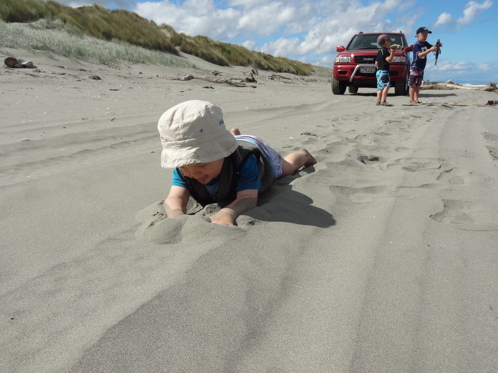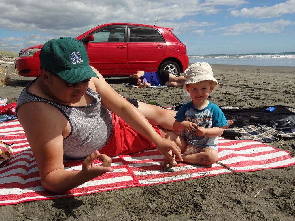 Ronan nous avait invité, nous et d'autres amis, à passer un weekend au camping d'Himatangi beach. Nous y étions passés pour la première fois il y a un mois, lors de notre tour de l'Ile du Nord, et c'est avc plaisir que nous y sommes retournés pour profiter de la plage et de nos amis.
