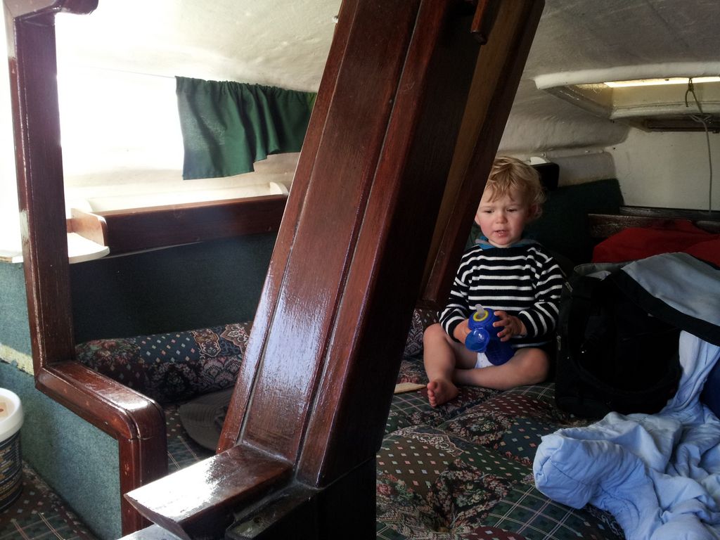 24. Plus tard, Adan doit siester. On le met dans le bateau et on se relaiera pour le surveiller. Il dormira 2h30 au total, dans la cabine!
