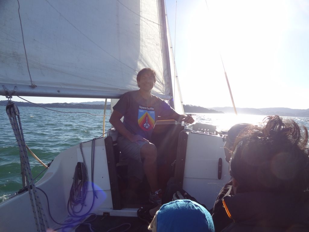 41. Bruno a barré quasiment tout le trajet et pourra bientot passer son diplome de barreur!