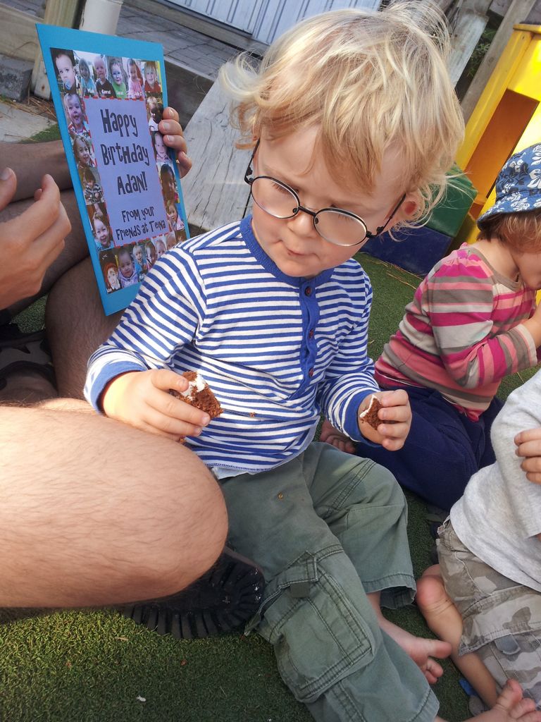 1. Nous arrivons a la creche, Adan est au centre de l'attention: c'est son anniversaire!