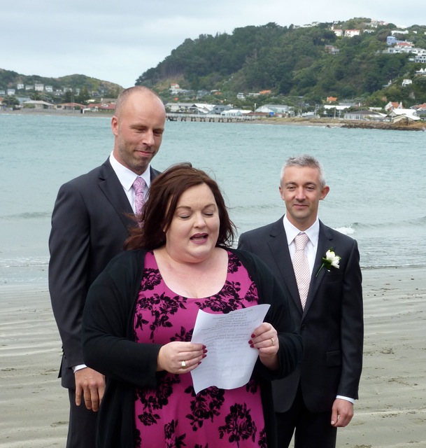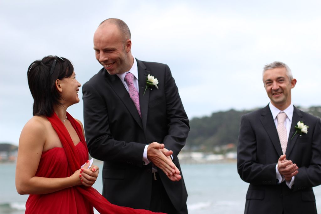 Ce samedi 29 mars 2014 a eu lieu la première partie de notre mariage, en Nouvelle Zélande, avant notre mariage en France au mois de Juillet. Devant nos amis kiwis, Seb et moi avons échangé nos consentements. La cérémonie fut très belle, émouvante, et exactement comme nous l'avions souhaitée. Roy, notre célébrant a déroulé la cérémonie, amené les témoins à donner leur discours, invité Rachel à chanter. Puis, nous avons dit nos "voeux" avant qu'Adan ne nous donne nos alliances.