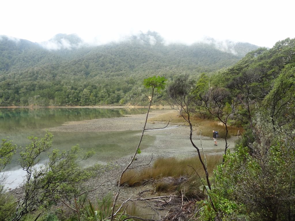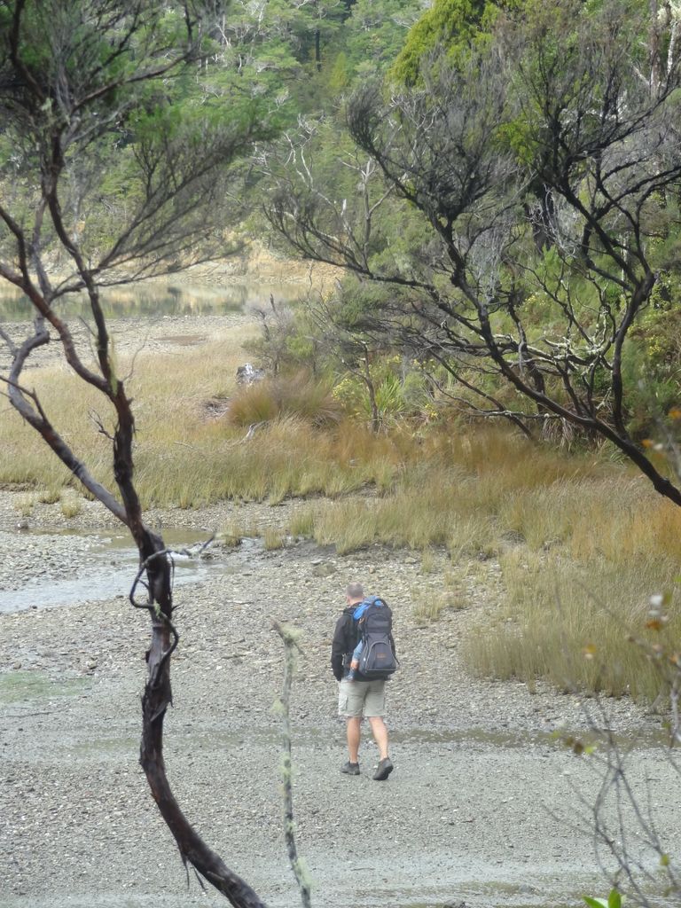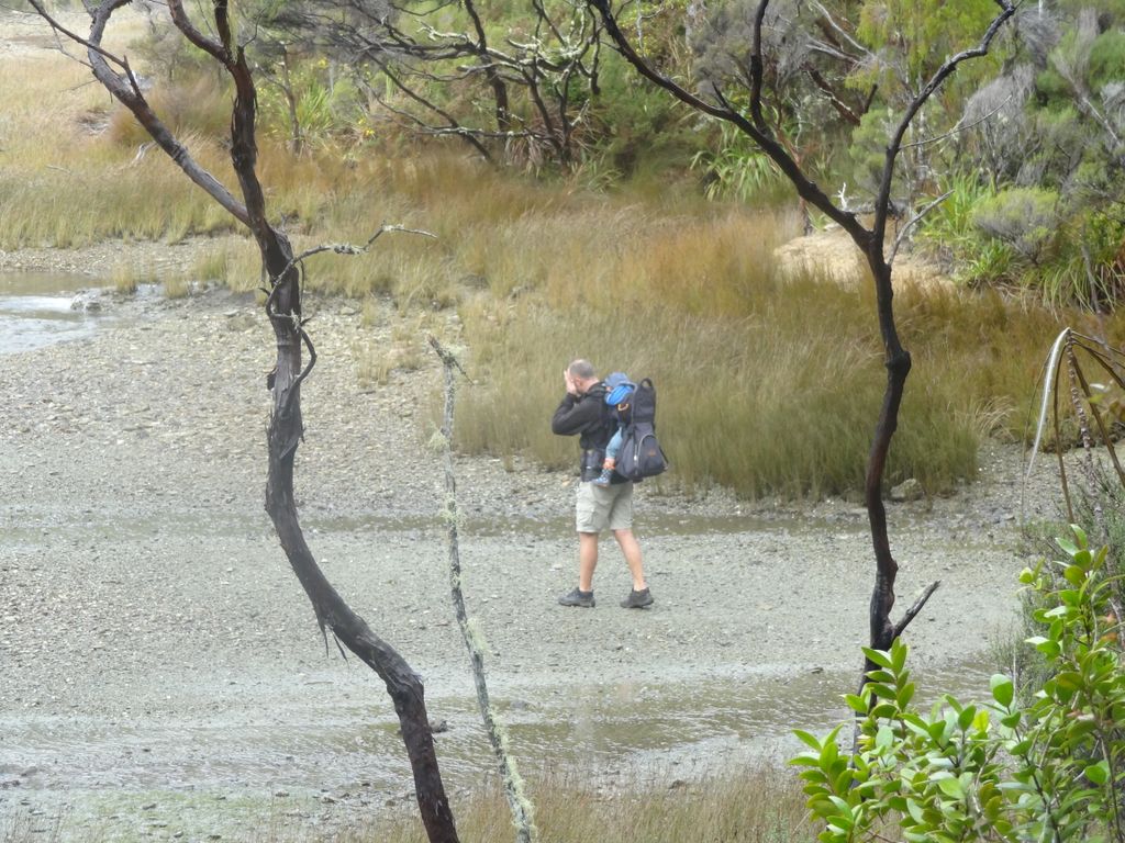 44. Te Arohangi, le backpacker du soir, pose a cote de la baie.