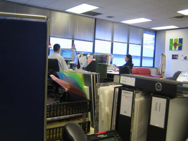 4. Mon bureau. Au fond, Carolyn, la boss du plateau