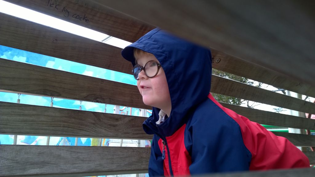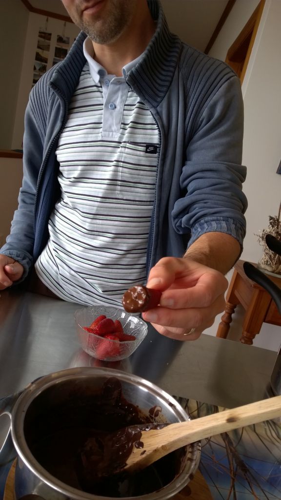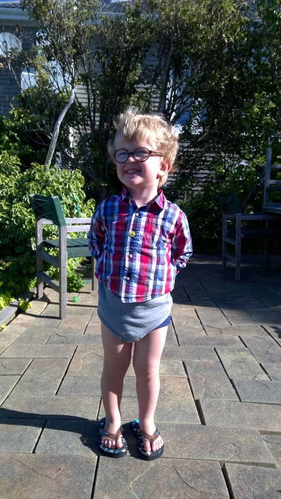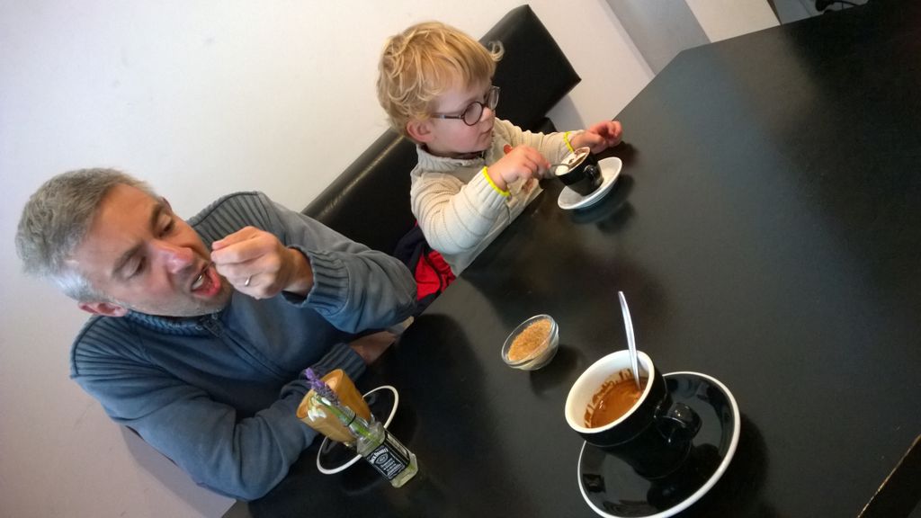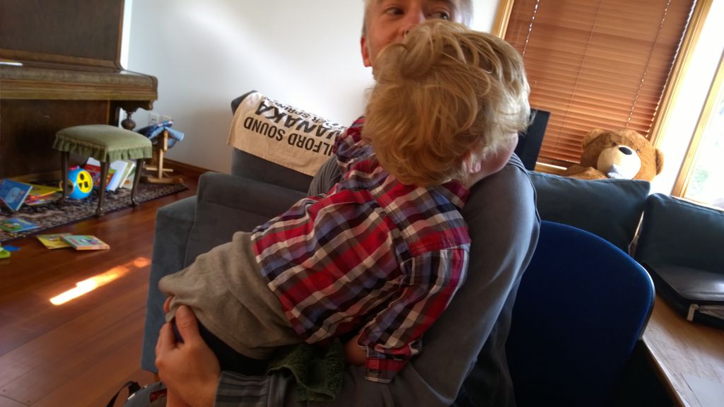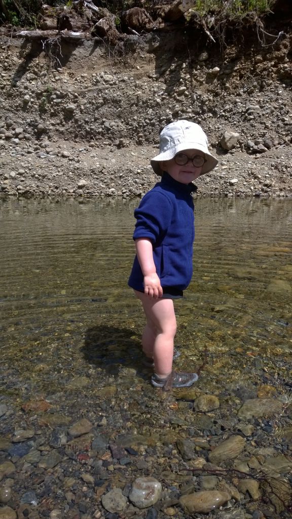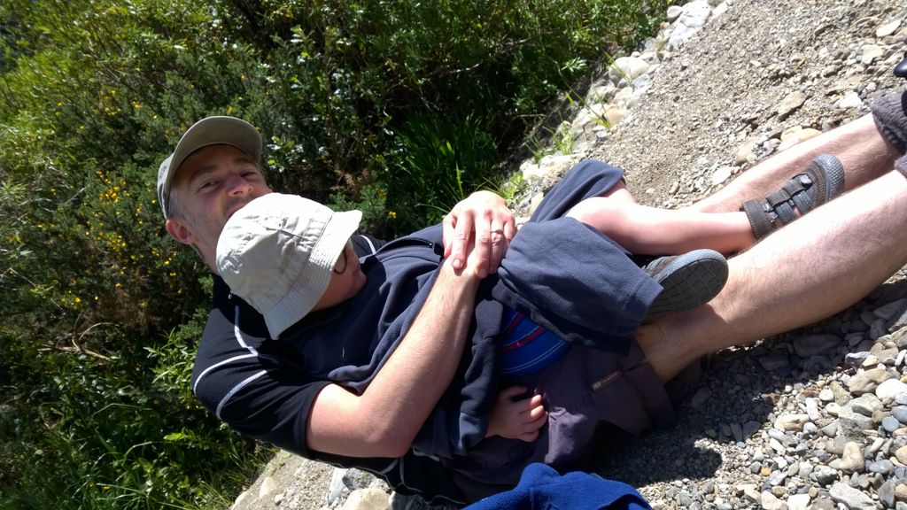 23. Adan a un peu trebuche au bord et s'est mouille un peu plus loin que desire. On se rechauffe dans le pull de Gros Papa.