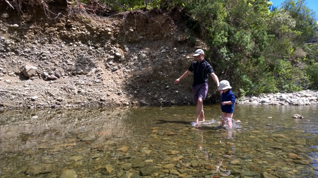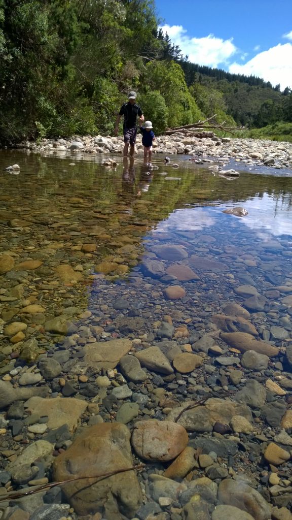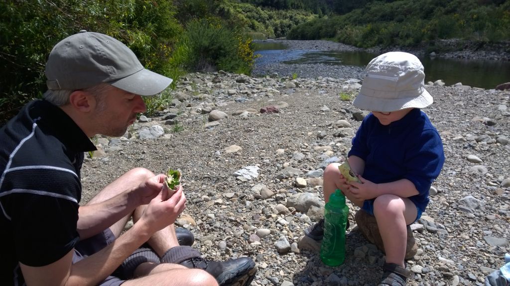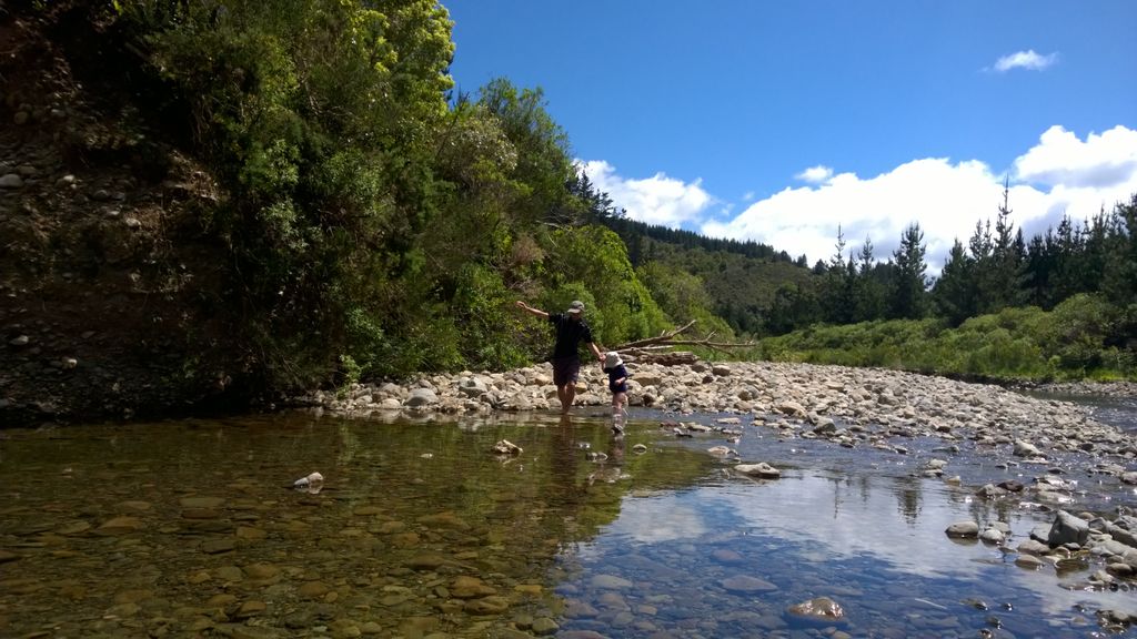 16. Promenade dans la Hutt Valley et arret pres d'une riviere pour le pique-nique.