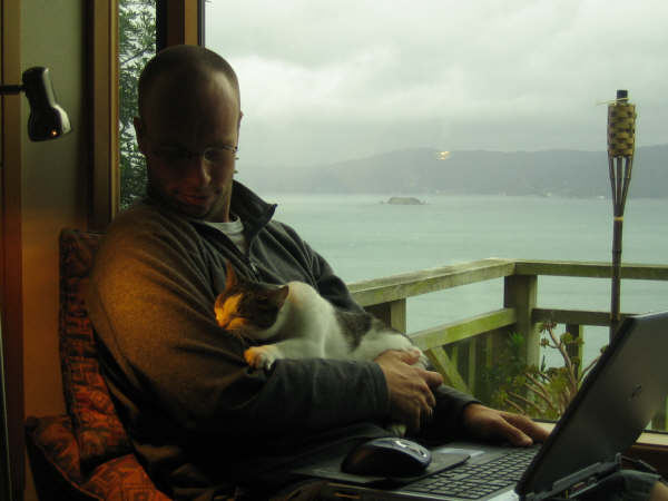 2. Dimanche 14. A la fenetre, en train d'écrire le blog