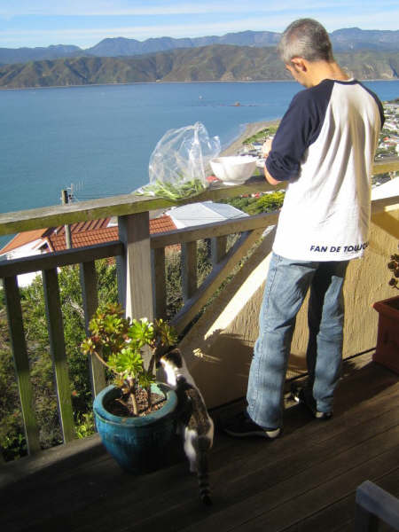33. L'heure du dejeuner. Il fait si beau que Seb equeute les haricot