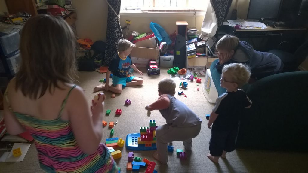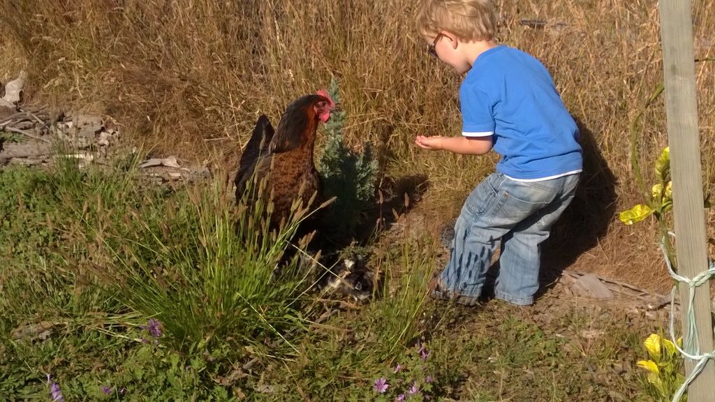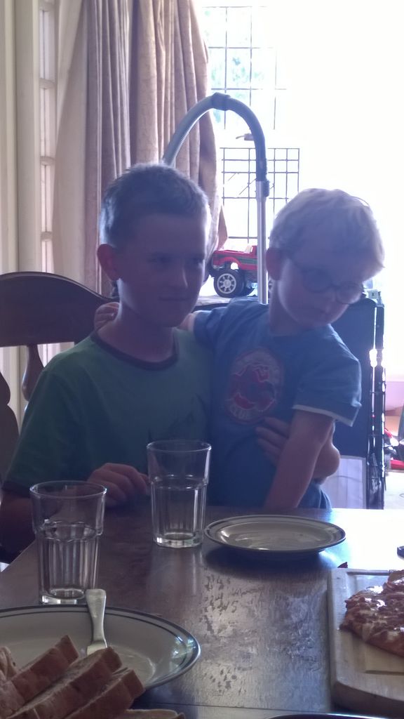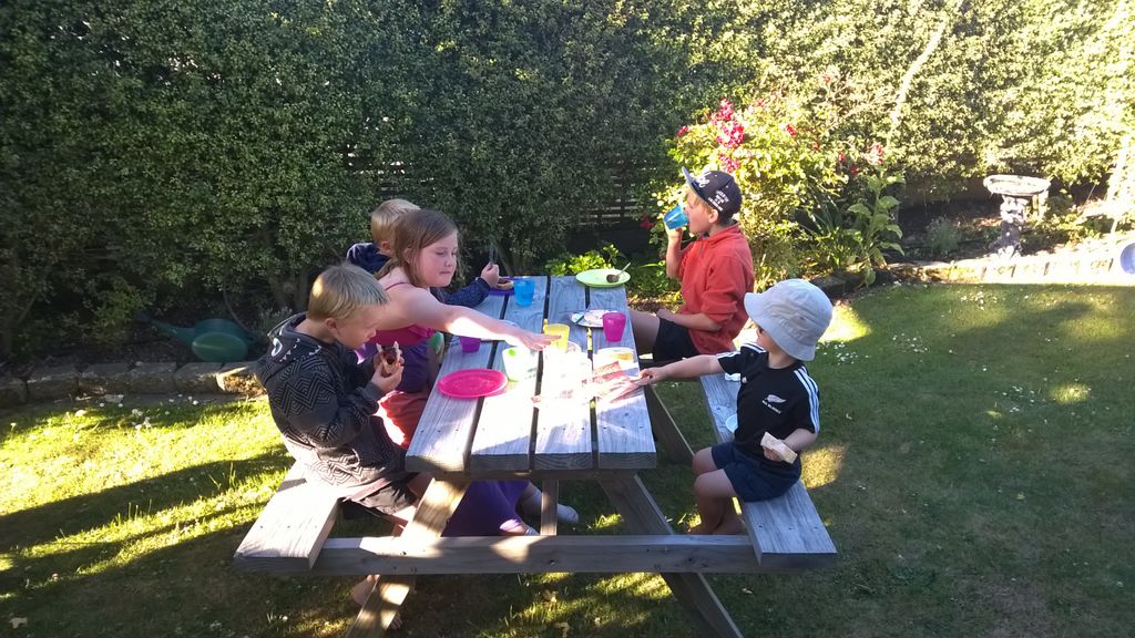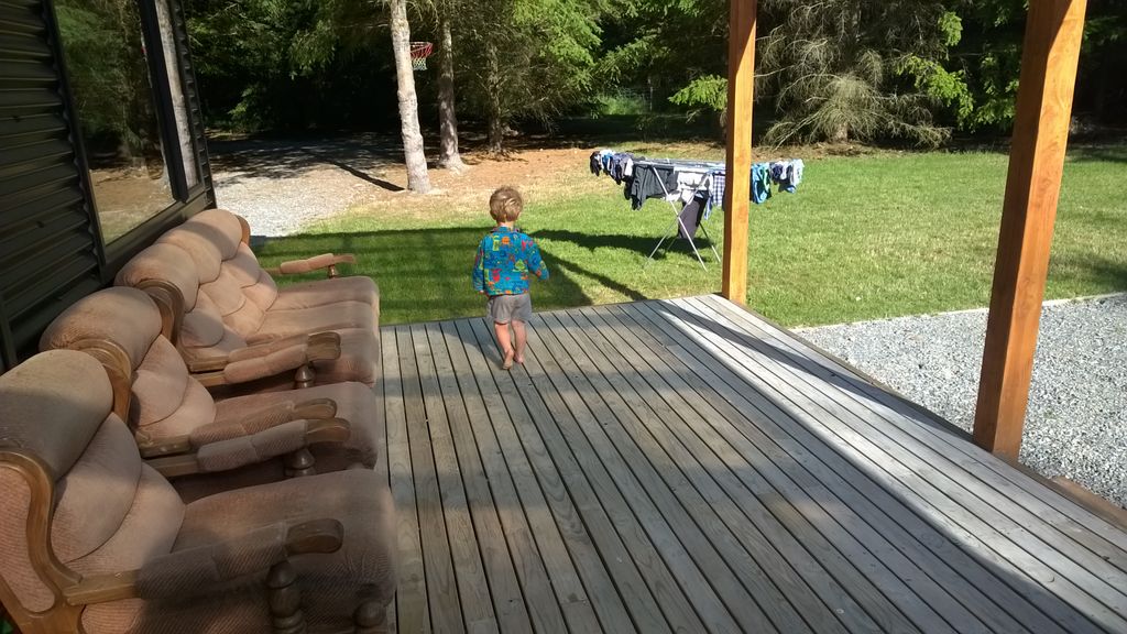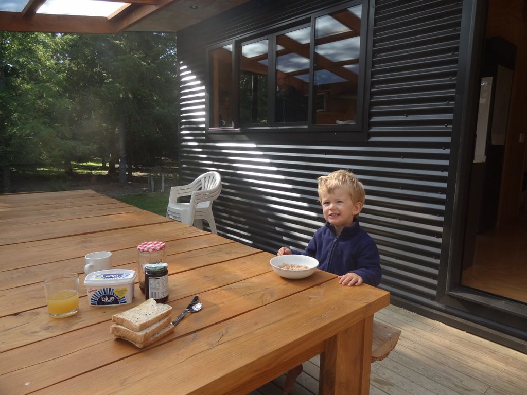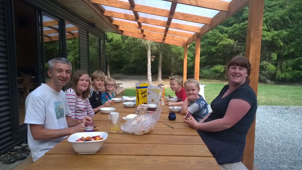 80. Lundi 5. Heidi et les enfants ont dormi au cottage. Du coup, petit dejeuner sur la terrasse