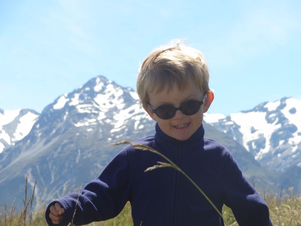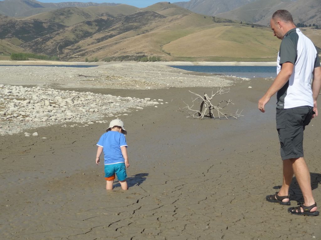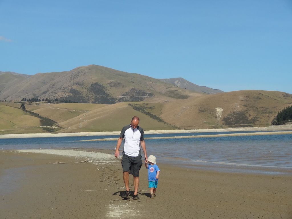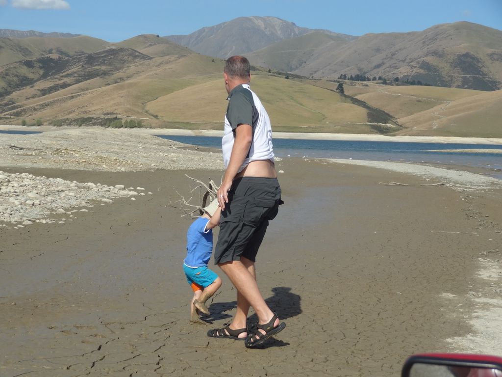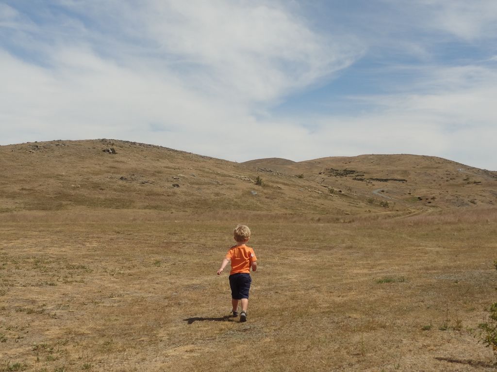 55. Pres du lac Ohau, Adan essaye de se promener ...