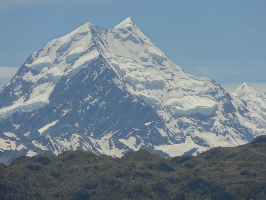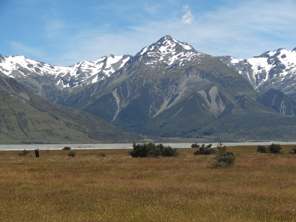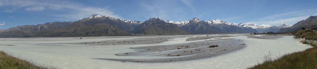 109. Le Mont Cook est a droite. La riviere alimente le lac Pukaki
