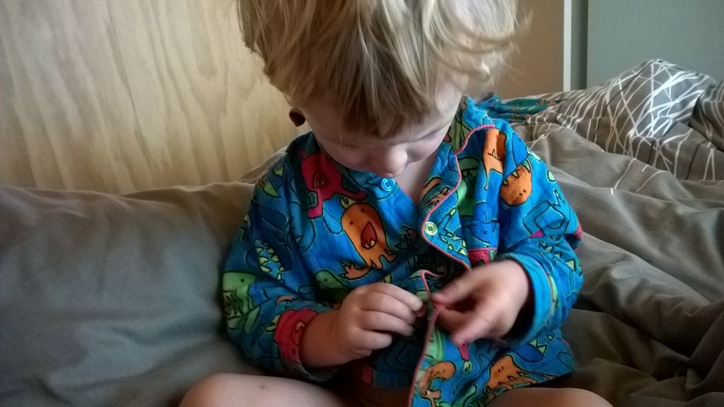130. Jeudi 8. Adan apprend a boutonner son pyjama ....